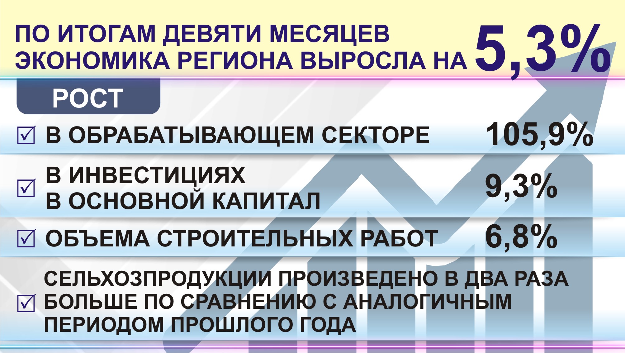 По итогам девяти месяцев экономика региона выросла на 5,3%. Этот показатель отражает сохранение положительной динамики в ряде ключевых отраслей. Как сообщил руководитель управления экономики и бюджетного планирования Дулат Ашкенов, рост в обрабатывающем секторе составил 105,9%, основное увеличение зафиксировано в легкой промышленности, производстве изделий из резины и пластмассы, химической промышленности, машиностроении, черной и цветной металлургии, производстве продуктов питания и строительной индустрии.