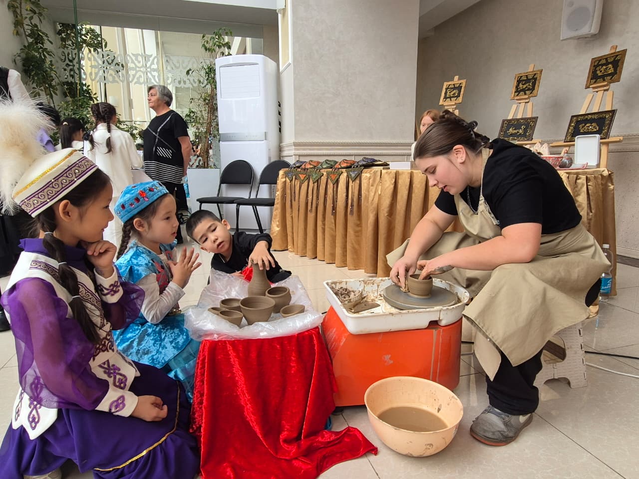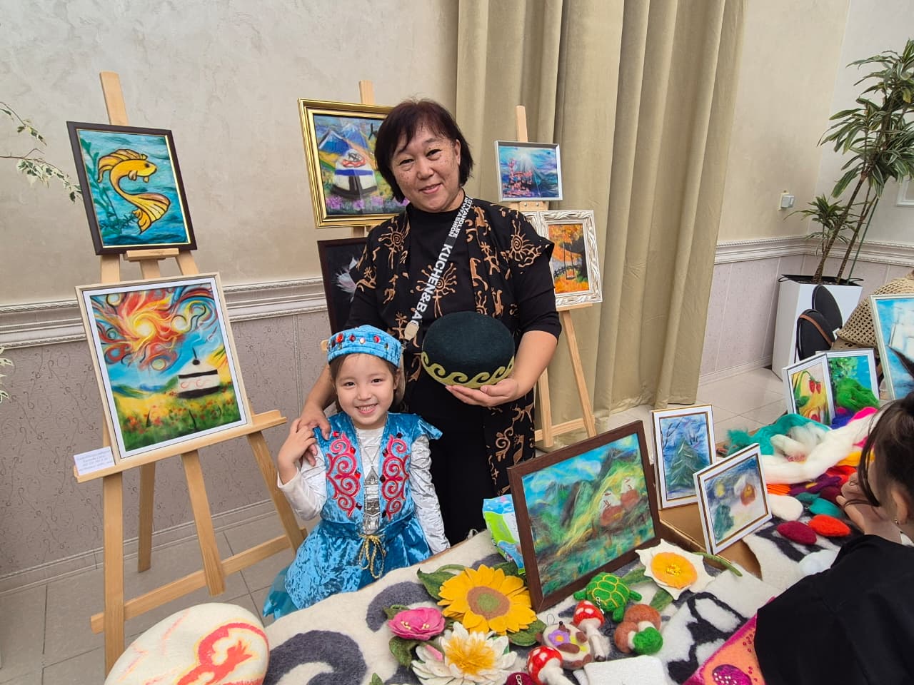 Член союза ремесленников Казахстана, жительница областного центра Гульжан Абдикашева представила на выставке изделия из керамики. Целеустремленная женщина благодаря государственной поддержке расширила свое дело и сейчас обучает своему ремеслу молодежь. Ее ученица, студентка Карагандинского технико-строительного колледжа Сандра показывала всем, как с помощью гончарного круга делать чашки. А вот художница Сауле Касенова только планирует подать заявку на получение гранта. На фестивале Сауле проводила мастер класс по войлочной живописи. Ее картины отражают национальную культуру казахов.