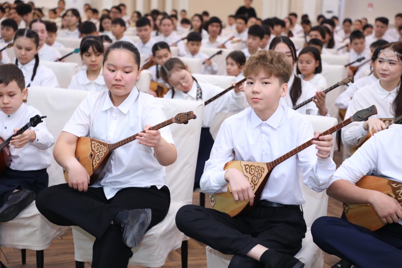 Около десяти тысяч юных жителей городов и районов Карагандинской области одновременно взяли в руки домбру, чтобы создать праздничное настроение.