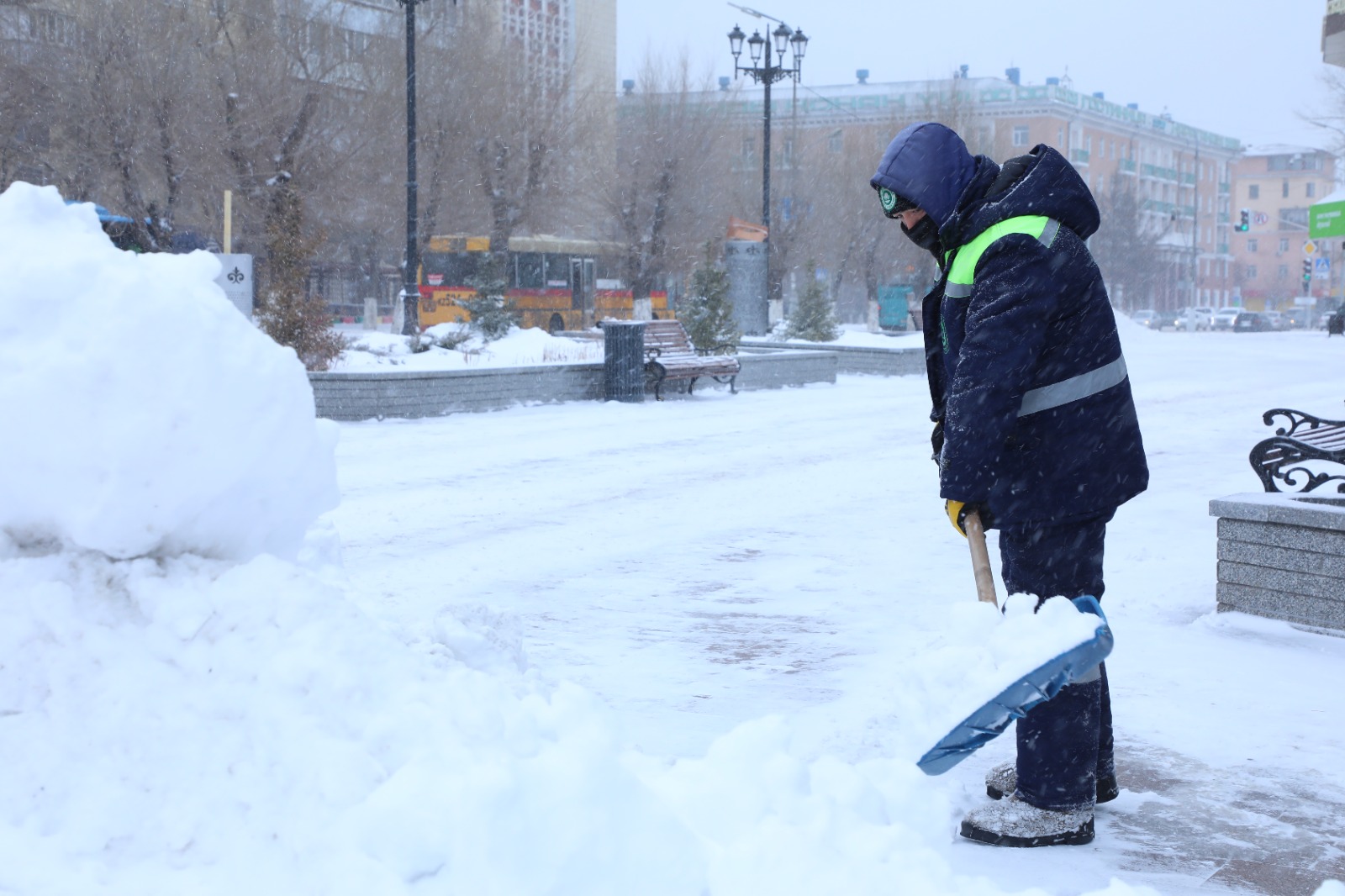 В Караганде в усиленном режиме работают дорожные службы, которые очищают улично-дорожную сеть.