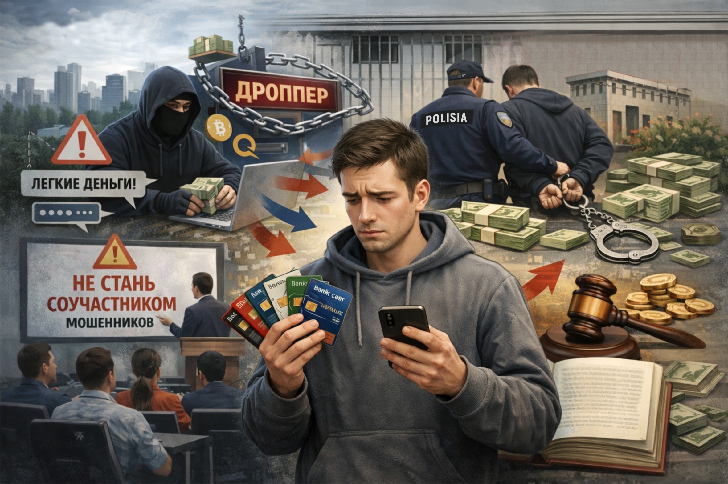 – Статья 232-1 УК РК (в зависимости от тяжести характера и размера полученной выгоды) предусматривает наказание от штрафа до 7 лет лишения свободы с конфискацией имущества. Кроме этого, в рамках Гражданского кодекса последует взыскание полной суммы обналиченных средств. Допустим, через карту дроппера прошло несколько миллионов. Их обязательно с него взыщут. Это не шутки. Статья 232-1 направлена на системную борьбу с кибермошенничеством, укрепление финансовой безопасности граждан и пресечение деятельности преступных групп, действующих в цифровом пространстве. Мною расследовалось уголовное дело, где наркоканал выводил денежные средства за рубеж. Оплата незаконных психотропных веществ поступала на Qiwi-кошелек, оттуда ее переводили на ряд банковских карт. В дальнейшем покупали цифровые активы (биткоин и другие), и выводилось все это за рубеж. Таких примеров было много, – рассказывает Нариман Интыкбаев.