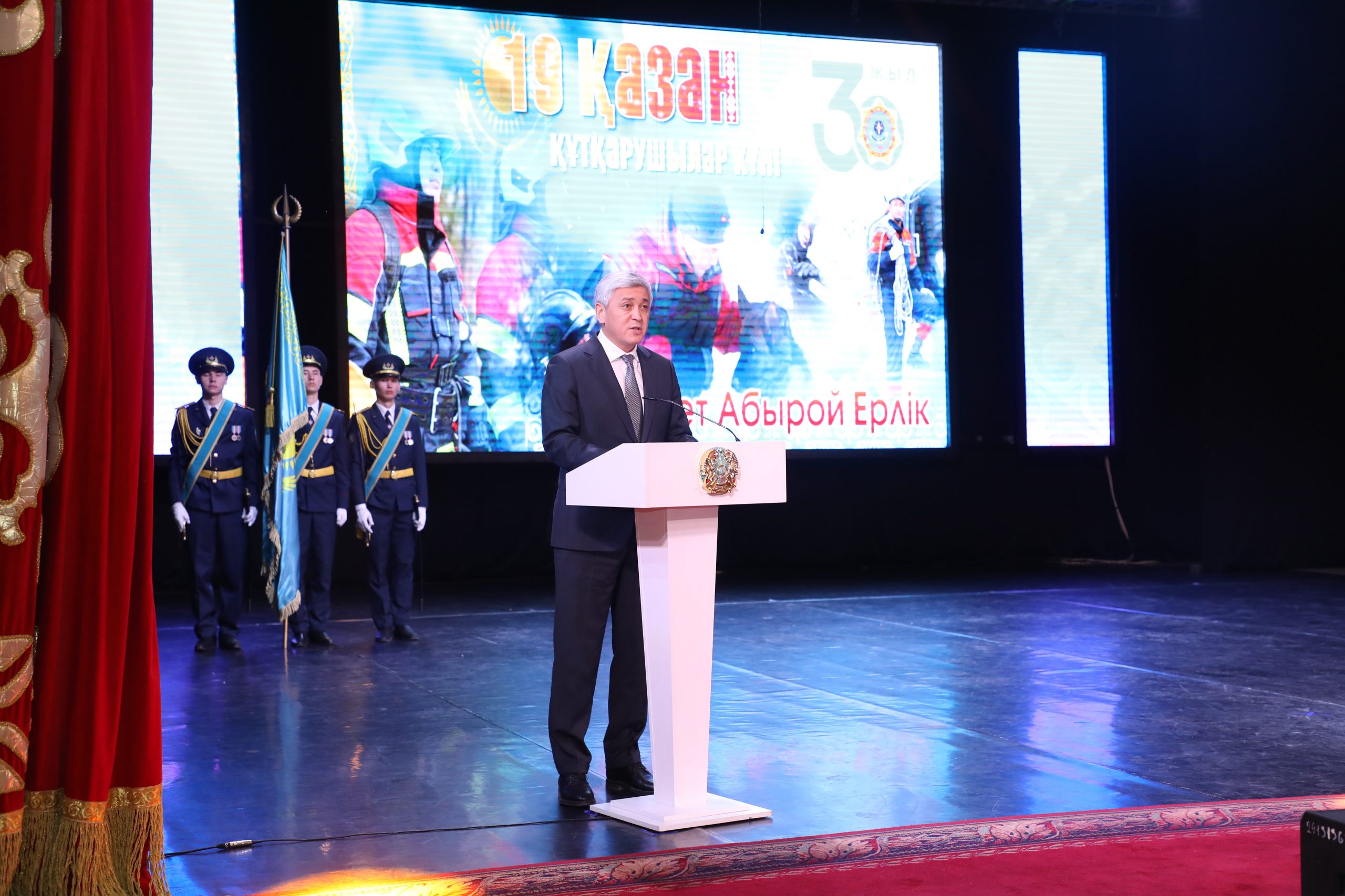 — Тридцать лет упорного труда, готовности помогать людям, спасать жизни и действовать в самый сложный момент. В системе ЧС области трудятся почти две тысячи человек — это военные и гражданские специалисты, государственные служащие. Молодые и опытные, совсем юные и уже ветераны — все вы часть одной команды, которую уважают и ценят. За последние пять лет только в нашей области вами было спасено более восьми тысяч жизней. Мы все понимаем, что это чьи-то семьи, чья-то история, которая могла оборваться, если бы не ваша самоотверженность. Со своей стороны мы стараемся быть надежной опорой для вас. Только в этом году на укрепление материально-технической базы выделено почти 1,75 миллиарда тенге. Это техника, экипировка и новые технологии — от беспилотников до спутниковой связи. Мы провели капитальный ремонт пожарной части в Темиртау, ведем реконструкцию еще шести объектов. В рамках программы «Ауыл құтқарушы» уже открыто пять новых пунктов пожаротушения в сельских районах, и эта работа продолжается, — сказал, открывая торжественное мероприятие, аким Карагандинской области Ермаганбет Булекпаев.