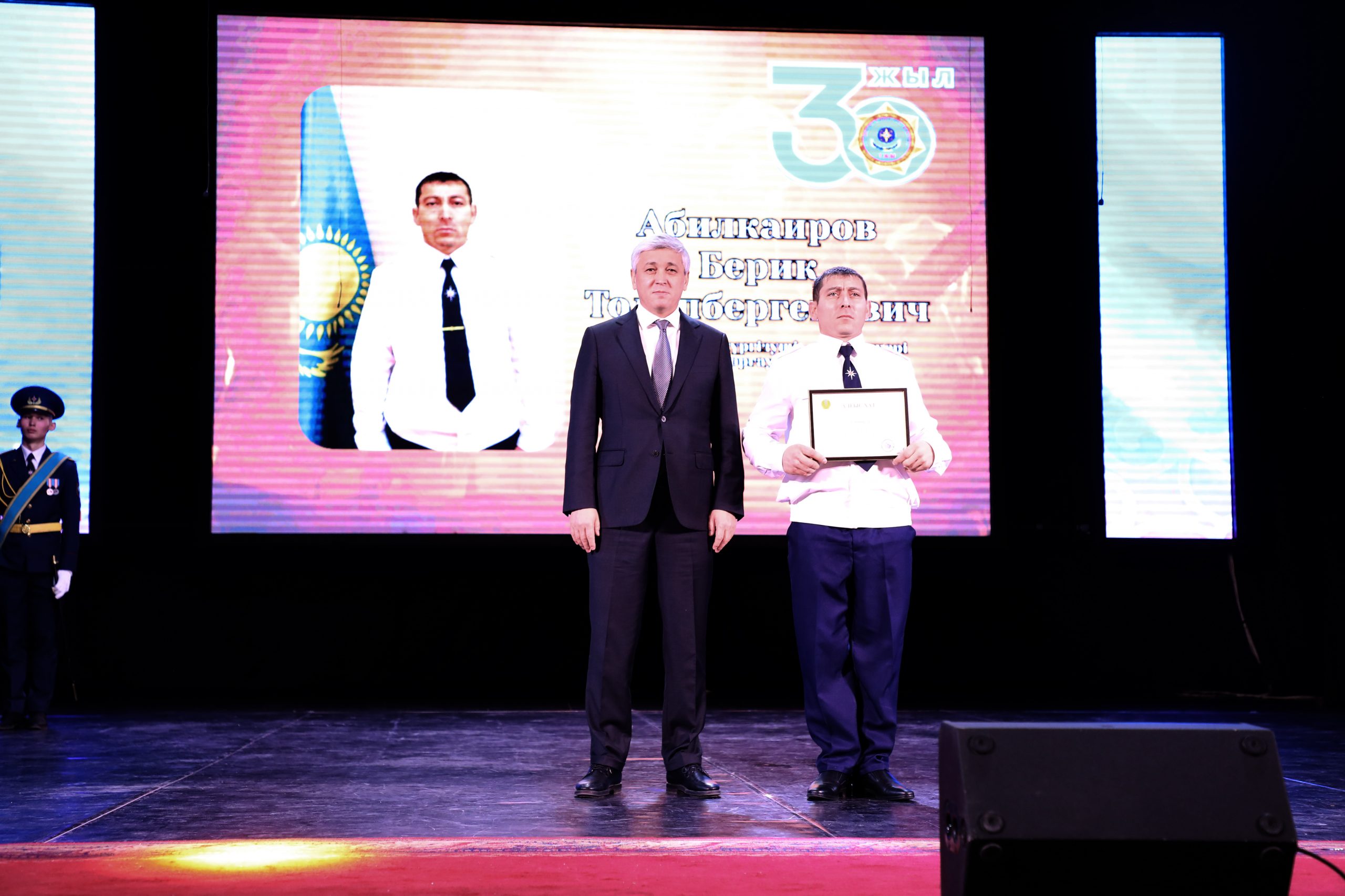 В честь профессионального праздника и 30-летия образования Министерства по чрезвычайным ситуациям Республики Казахстан благодарственным письмом главы региона были награждены: водитель пожарного автомобиля пожарной части № 12, старший сержант гражданской защиты Берик Абилкаиров, командир отделения пожарной части № 12, старшина гражданской защиты Рустем Кабышев, водитель пожарного автомобиля пожарной части № 6, старший сержант гражданской защиты Бауыржан Салиев, водитель пожарного автомобиля пожарной части № 11, старшина гражданской защиты Жанат Шубаров.