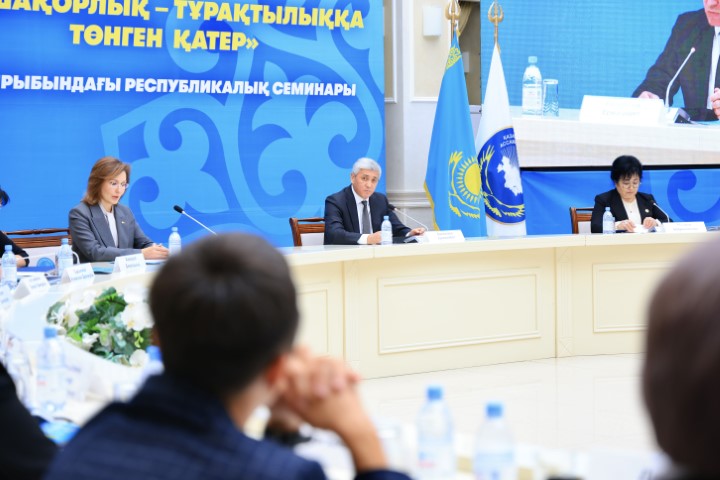 Семинар стал центральной площадкой для обсуждения проекта «Салауатты сана», направленного на укрепление семейных ценностей и профилактику социальных угроз среди молодежи. В его работе приняли участие представители Администрации Президента, Генеральной прокуратуры, МВД, министерств здравоохранения и образования, депутаты Мажилиса, члены Советов матерей регионов, представители НПО и эксперты.
