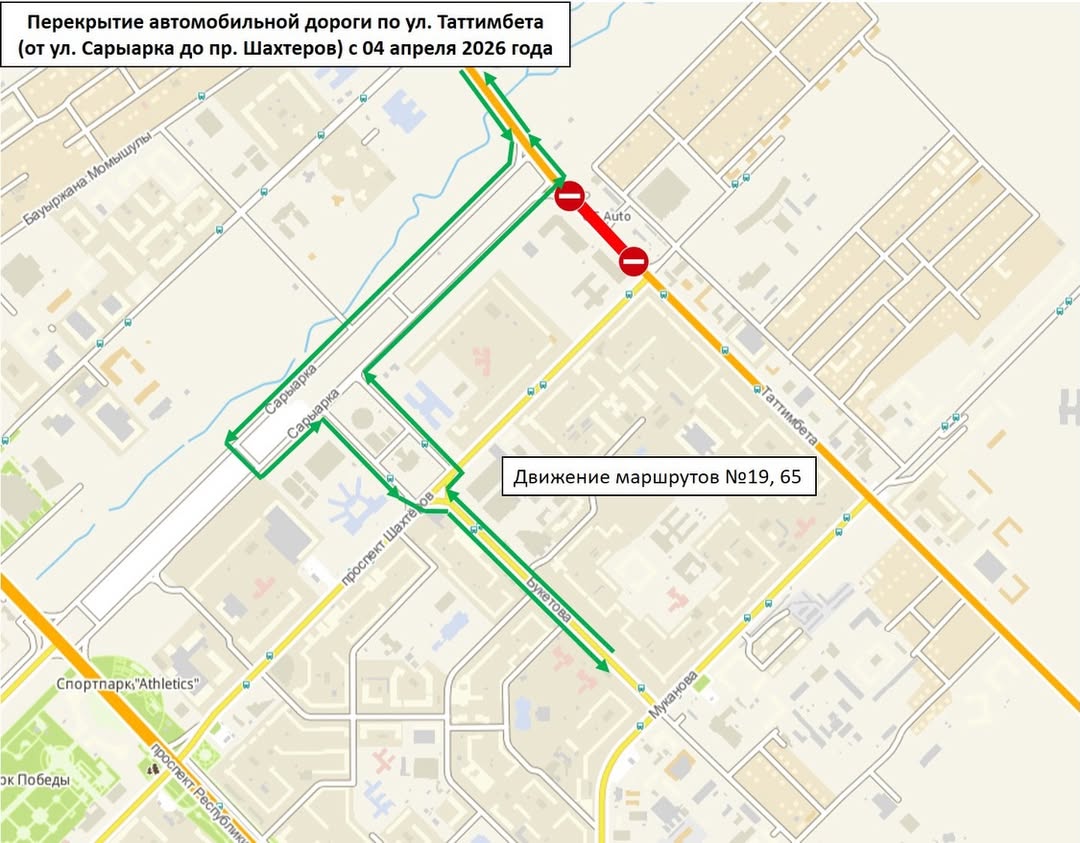 Отдел коммунального хозяйства, пассажирского транспорта и автомобильных дорог Караганды сообщает, что начнется средний ремонт проезжей части на улице Таттимбета. Чтобы подрядчик качественно уложил асфальт, перекроют участок автодороги от улицы Сарыарка до проспекта Шахтеров. Изменится и движение общественного транспорта. Семь маршрутов — № 19, 65, 02, 70, 5, 63, 29 — будут ездить по временной схеме. Пассажиров и автолюбителей просят заранее планировать свои маршруты.