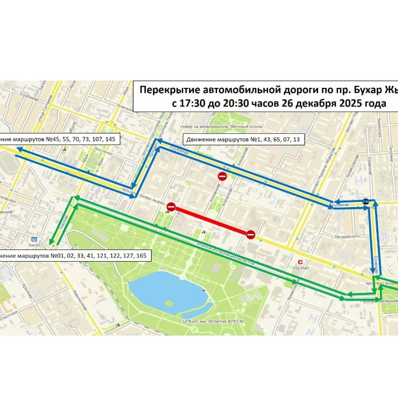 Как сообщили в акимате Караганды, для безопасности перекроют участок автодороги по проспекту Бухар-жырау: от ДКГ до ЦУМа. Проезд будет недоступен с 17.30 до 20.30. Движение общественного транспорта будет осуществляться согласно схеме. Пассажиров и автолюбителей просят заранее планировать маршрут.