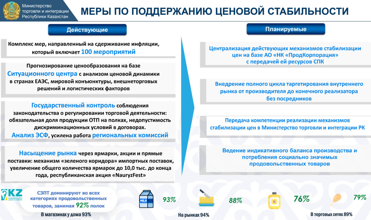 Рассказал председатель Комитета торговли и о том, что делается для поддержания ценовой стабильности.