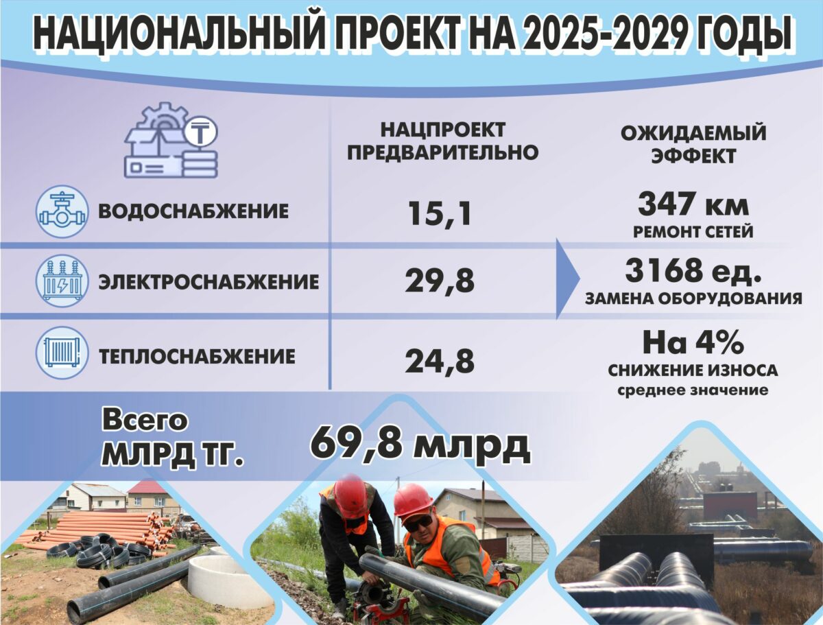 На брифинге Региональной службы коммуникаций рассказал спикер и о Национальном проекте «Модернизация энергетического и коммунального секторов» на 2025-2029 годы. Он был утвержден в декабре 2024-го по поручению Президента Казахстана Касым-Жомарта Токаева. Его основные задачи – снижение износа и аварийности инженерных сетей, что, несомненно, приведет к повышению качества услуг. В рамках реализации Нацпроекта проведен анализ состояния действующей коммунальной инфраструктуры Карагандинской области в разрезе секторов.