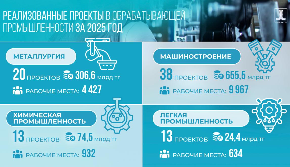 В 2025 году в отрасли реализовано 20 инвестиционных проектов с общим объемом инвестиций 306,6 млрд тенге, создано 4 427 рабочих мест.