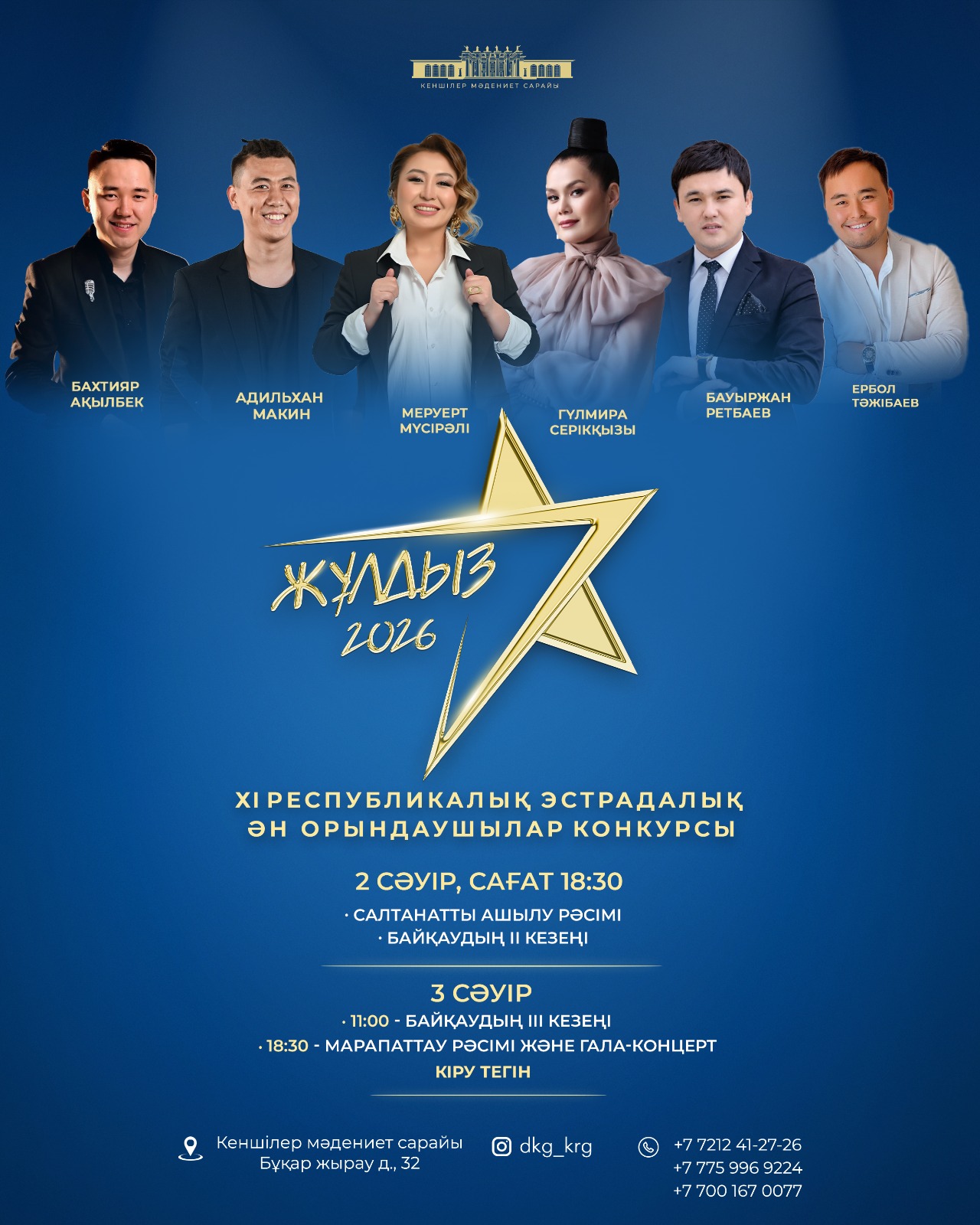 -Республиканский конкурс „Жұлдыз-2026“ дает путевку молодым талантам на большую сцену. И поэтому такие проекты позволяют открыть новые имена, новые голоса. Немаловажно и то, что музыкальное состязание помогает участникам совершенствовать