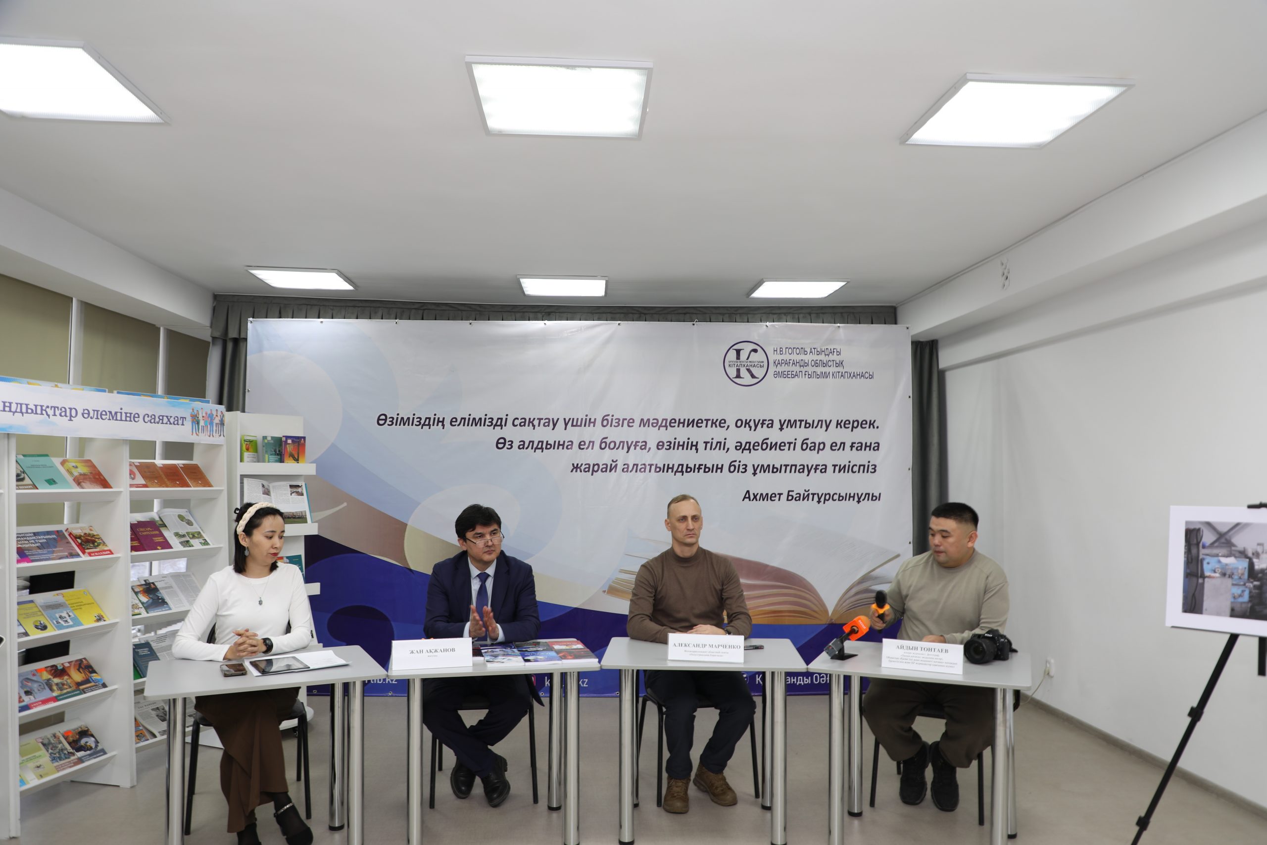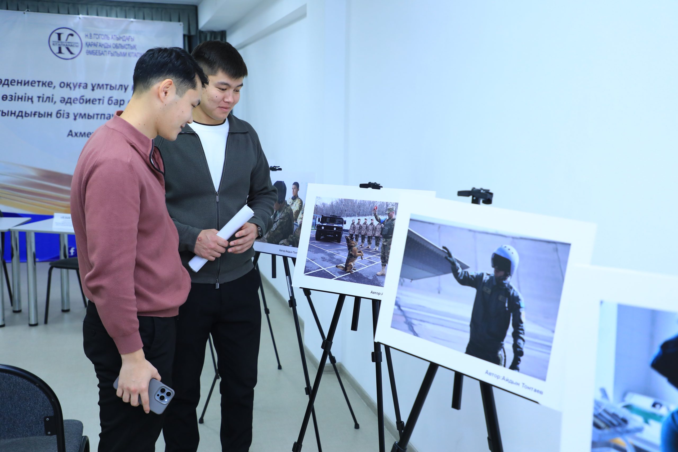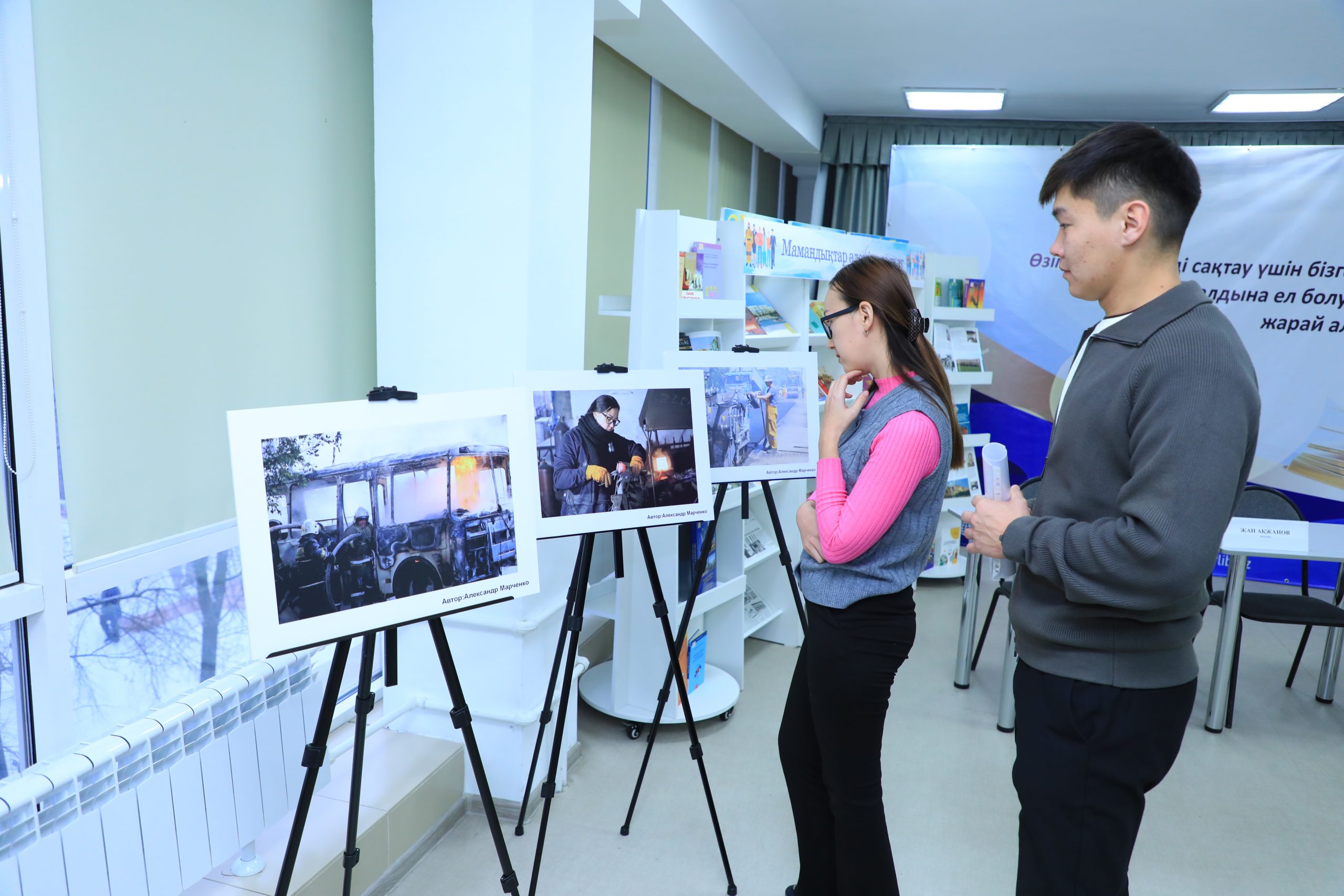 Горящий автобус, цеха заводов, связист и водитель боевых машин — все это могли увидеть посетители Областной универсальной научной библиотеки имени Н.В. Гоголя, где прошла фотовыставка, посвященная году рабочих профессий. А казахстанский писатель Жан Акжанов презентовал там свою новую книгу.