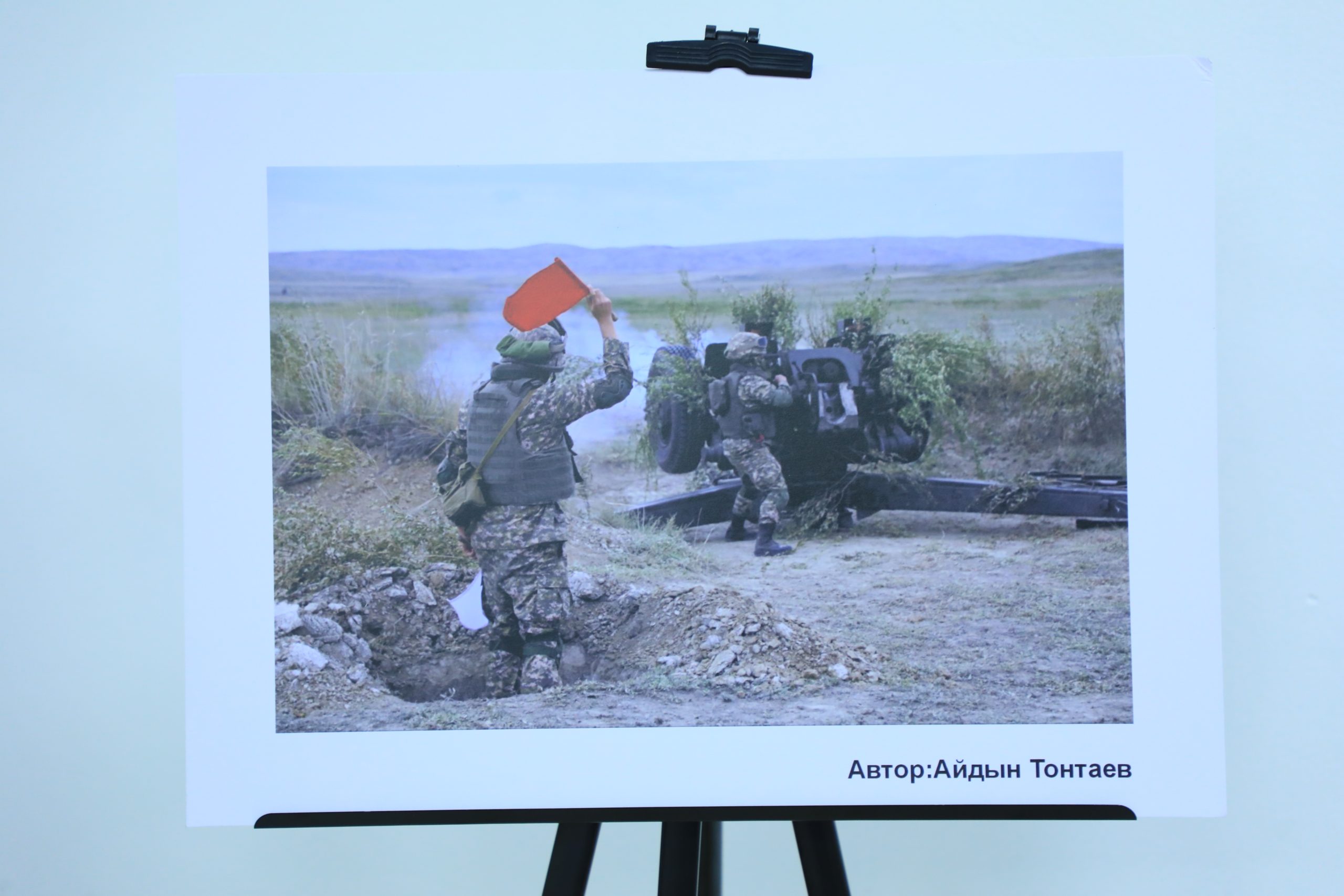 В зале были представлены и работы фотографов. К примеру, Айдын Тонтаев снимает будни военнослужащих. Их казалось бы рутинная работа, попадая в кадр, перестает быть таковой. На снимках можно увидеть тренировки кинолога и собаки или экипаж боевой машины.