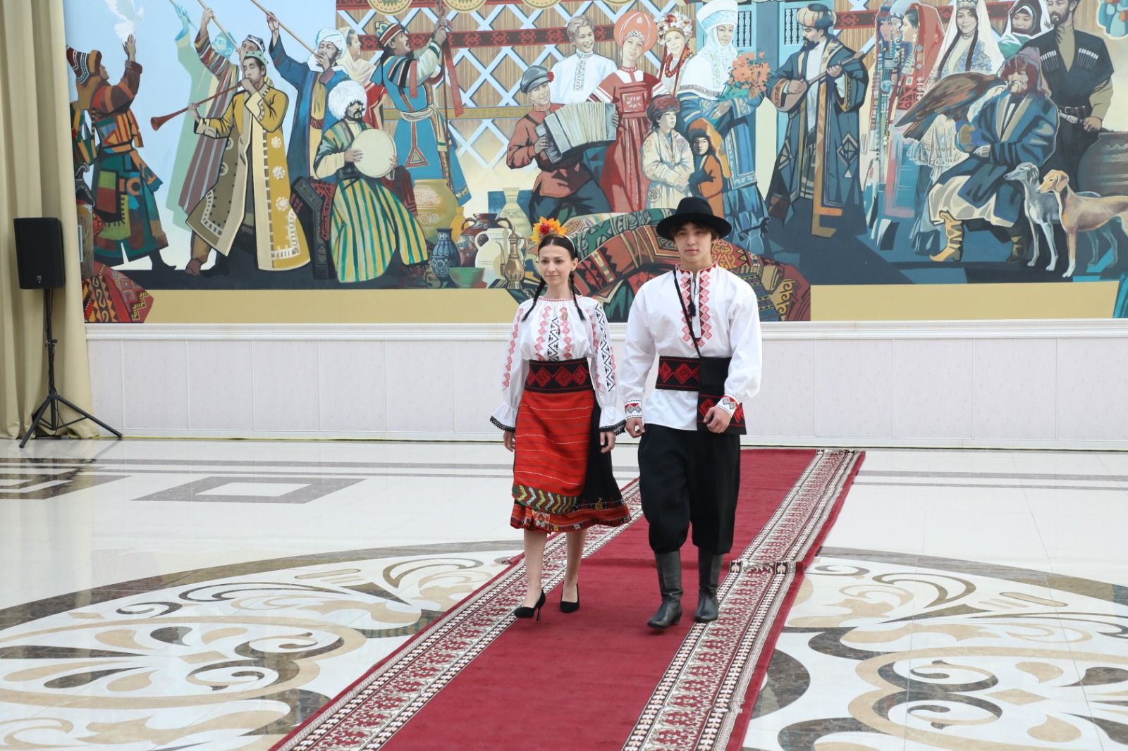 Перед началом состоялся показ национальных костюмов румынского народа. Каждый наряд был настоящим произведением искусства, отражающим богатство народных традиций и любовь к культуре. Руководитель КГУ «Қоғамдық келісім»  Гульнара Касембаева зачитала приветствие от имени акима Карагандинской области Ермаганбета Булекпаева председателю ОО «Румынское культурное общество «Дакия» Виорике Ненаховой и членам общества.