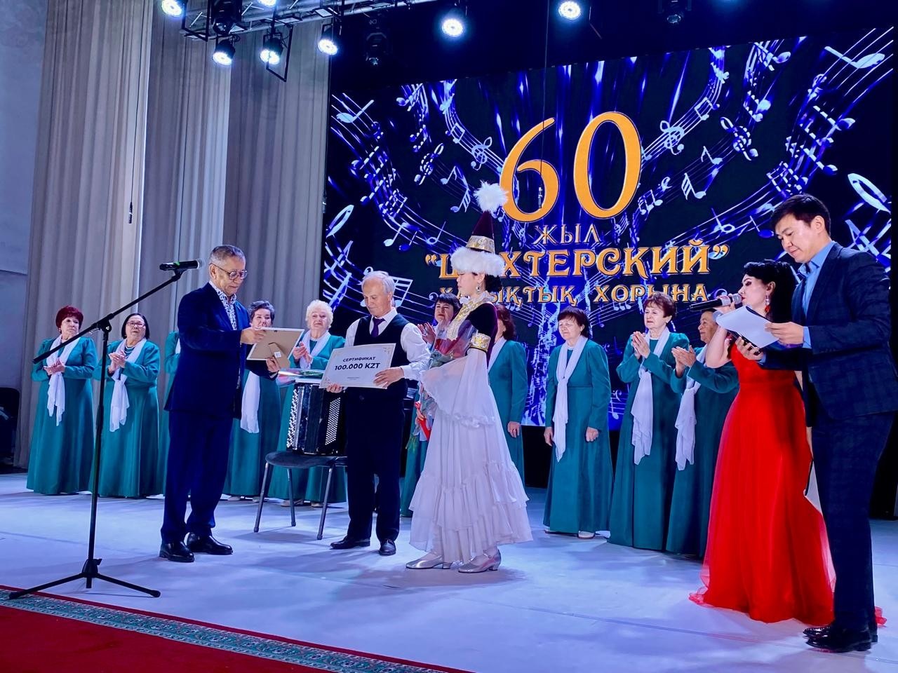 С 60-летним юбилеем коллектив народного хора «Шахтерский» поздравили представители областной и городской администрации, руководители культурных учреждений. Руководитель отдела культуры, развития языков, физической культуры и спорта Берік Досымбеков вручил благодарственное письмо от имени акима Караганды Мейрама Кожухова. Руководитель районного филиала республиканского общественного объединения «Организация ветеранов» Марaт Аймагамбетов передал благодарственное письмо от имени акима района Алихана Бокейхана Досбола Кулекеева. А директор ДК культуры железнодорожников Серик Муканов вручил каждому члену творческого коллектива благодарственные письма и денежные сертификаты от имени областного управления культуры и научно-методического центра.