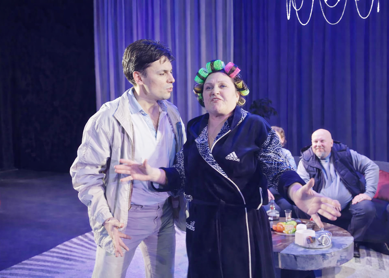 Появляется на сцене и яркая, запоминающаяся Клавдия Ивановна – соседка, мать Татьяны, образ которой воплощают Ирина Немцева и Галина Турчина. Их героиня – человек прямолинейный, эмоциональный и по-своему мудрый. Она не склонна к излишним рассуждениям и говорит то, что думает, не стесняясь в выражениях. Клавдия Ивановна привносит в действие особую энергетику, создавая некий комический хаос. С ее появлением диалоги становятся острее, а абсурдность ситуации – еще выразительнее.