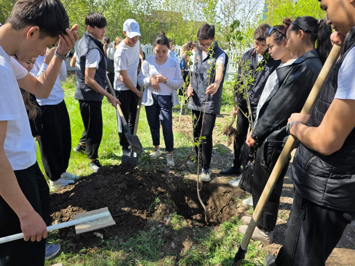 Особое внимание было уделено акции, прошедшей в школе имени Бауыржана Момышулы. Здесь экологическая традиция насчитывает более 30 лет и является неотъемлемой частью школьной культуры. На территории школы создана «Аллея выпускников», благодаря которой школьный двор со временем превратился в уютную зелёную зону, напоминающую небольшой парк.