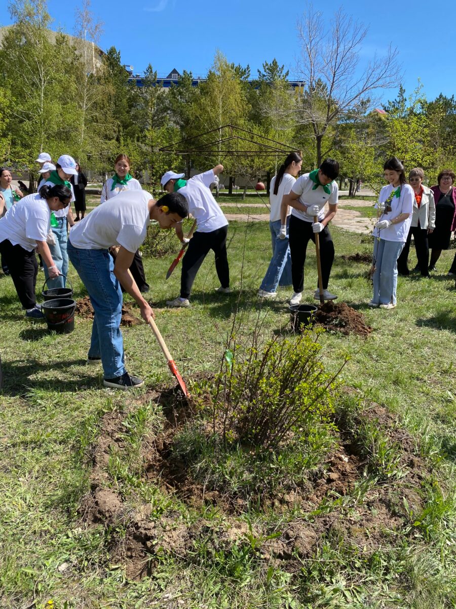 В этом году 78 выпускников школы высадили более 40 деревьев, среди которых ели, берёзы и плодовые культуры. Кроме того, территорию украсили 50 кустов герани. В дальнейшем, в рамках акции «Таза Қазақстан», планируется высадка ещё около 1000 цветов и создание этно- тематической цветочной зоны.