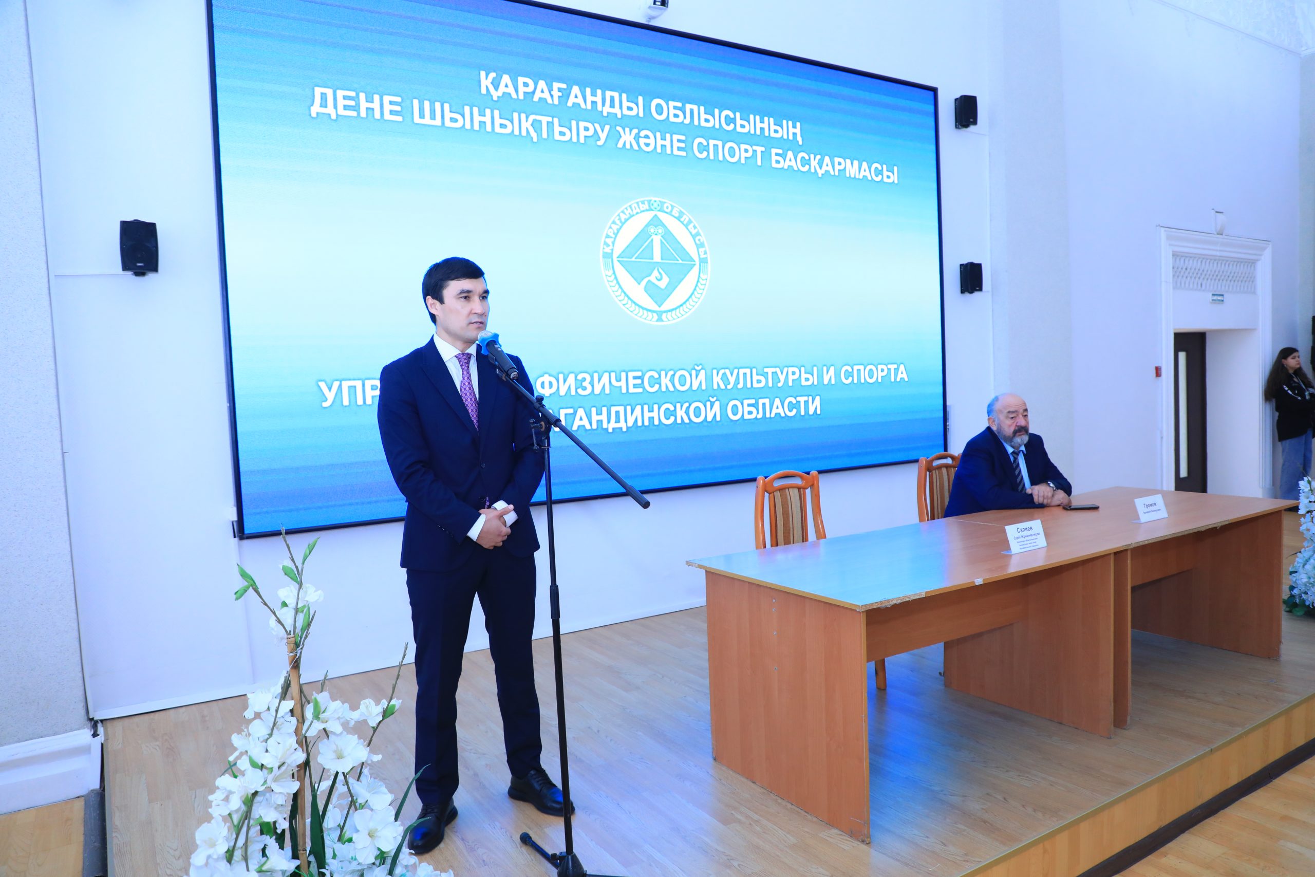 Руководитель управления физической культуры и спорта Карагандинской области Серик Сапиев поздравил всех с Новым годом и отметил важность деятельности филиала, выразил глубокую признательность ветеранам, внесшим значительный вклад в развитие спортивной сферы: