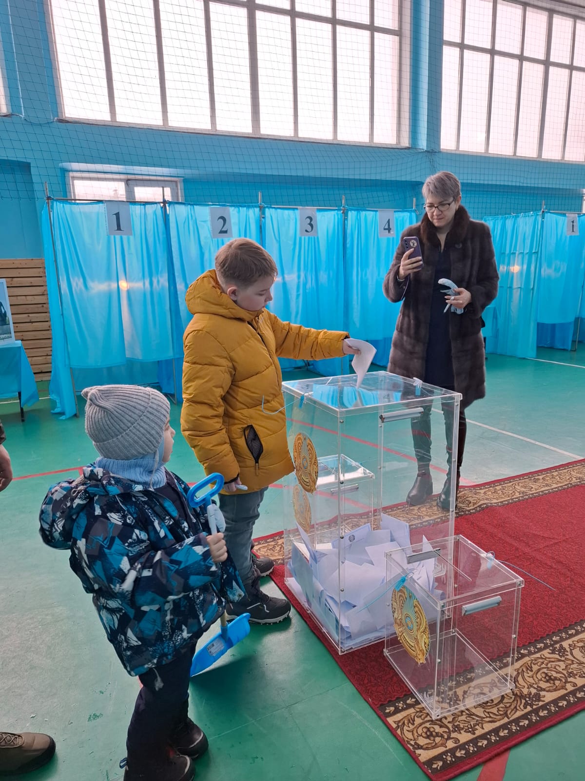 На участке №162 района Алихана Бокейхана города Караганды воскресный день выдался оживленным. С раннего утра люди шли по одному, парами, семьями с детьми. Некоторые немного дольше задерживались у стола регистрации, чтобы взять бюллетень.