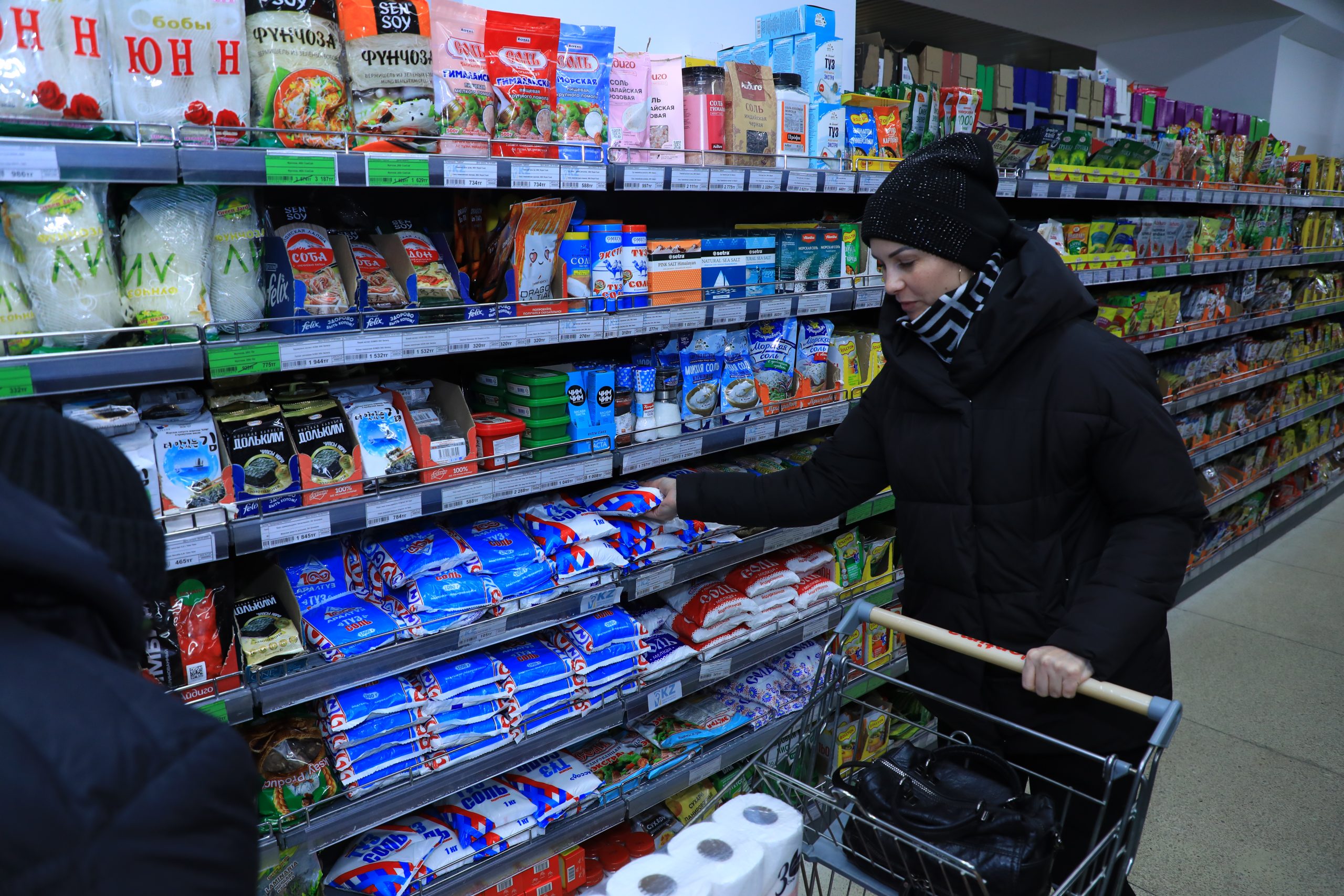 К товарам первой необходимости можно отнести муку и мучные изделия. Среди популярных – мука Карагандинского хлебного комбината, компании «Дамир», марка «100 пудов» мельницы «Сұңқар». Макаронные изделия представляет фирма «Караганды Нан».