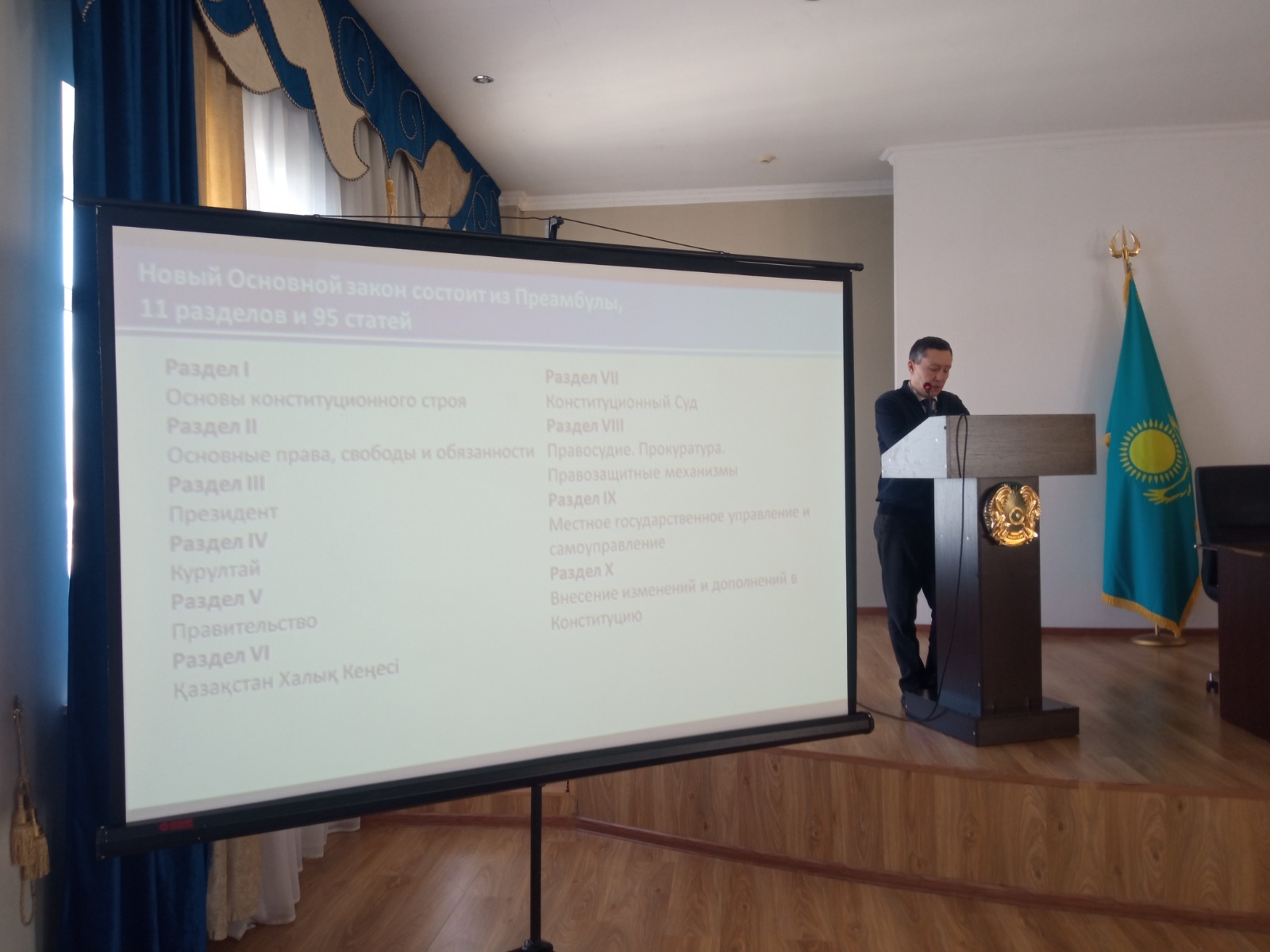 По словам Г. Абдибаева, процесс обсуждения и разработки новой редакции Конституции проходил в открытом формате и занял достаточно длительное время — практически полгода. Он отдельно остановился на втором разделе новой Конституции — «Основные права, свободы и обязанности», главный акцент в котором сделан на усиление гарантии реализации и защиты прав и свобод исходя из принципа высшей ценности человека. В этом направлении максимально учтены требования общепризнанных международных актов в области защиты прав человека.