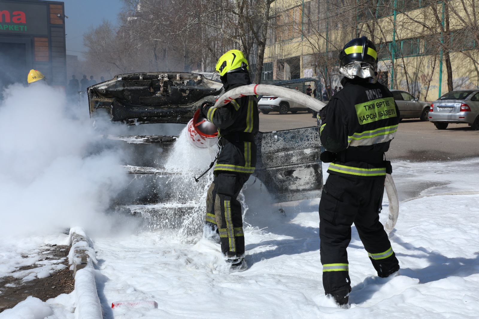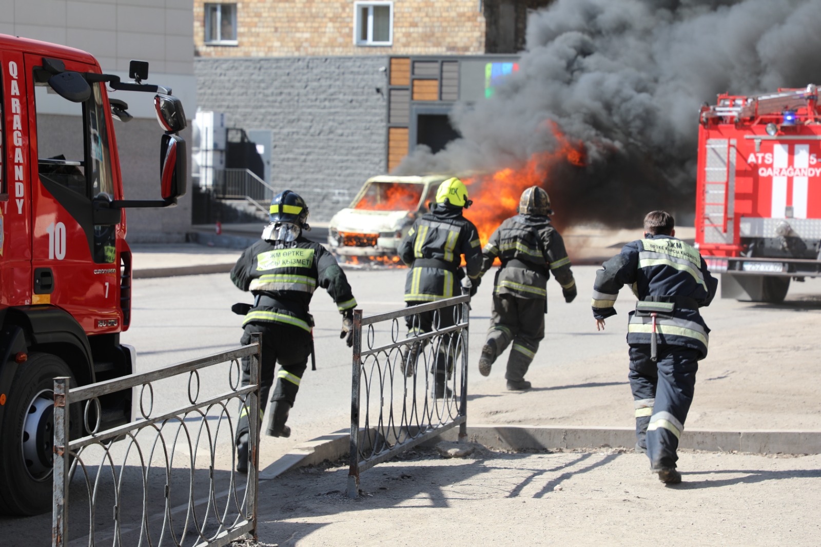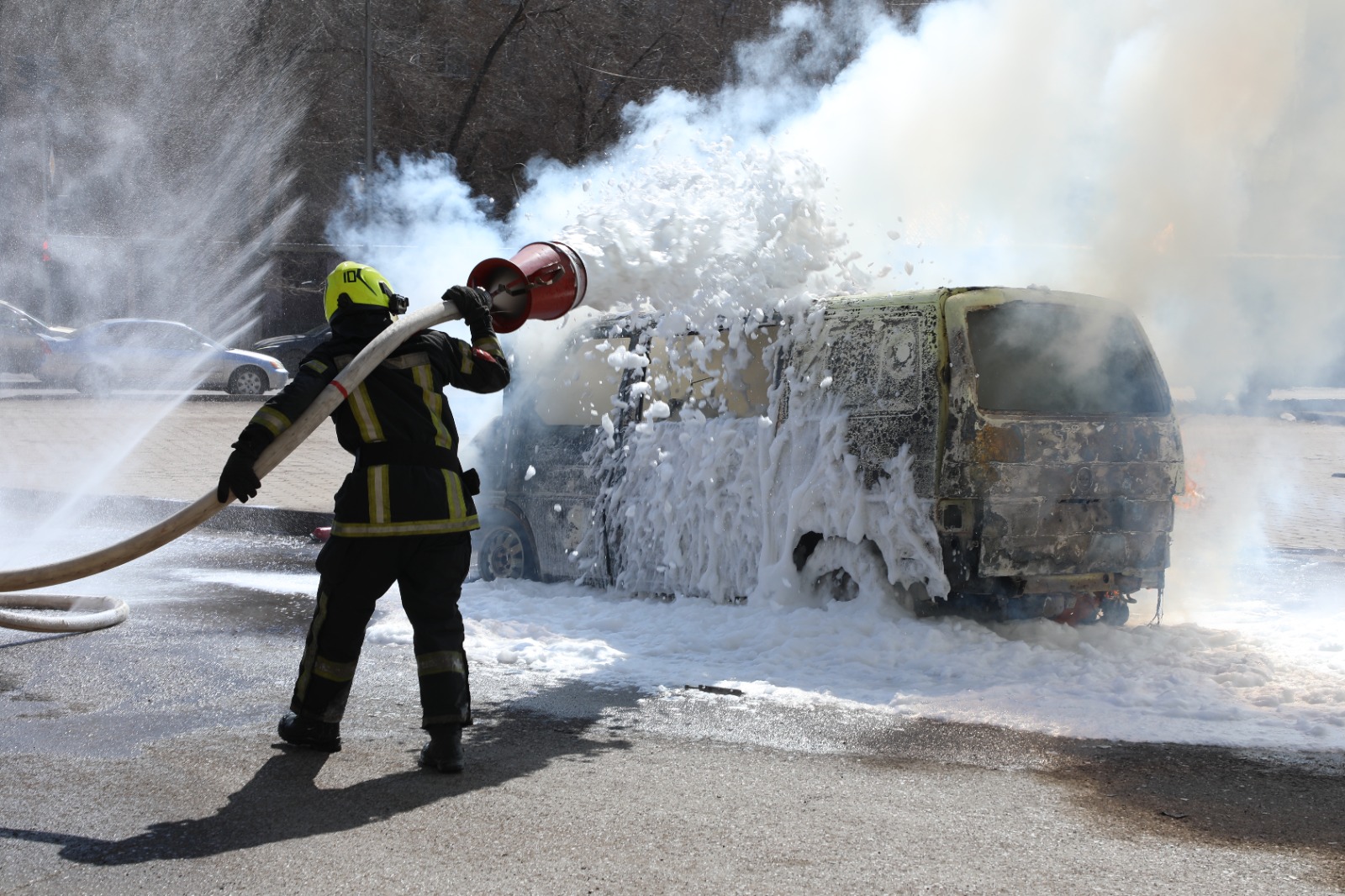 В 11.03 в Караганде, по улице Ермекова, 33 произошло горение сгораемых частей автомобиля «Volkswagen Transporter» на площади 4 кв.м.