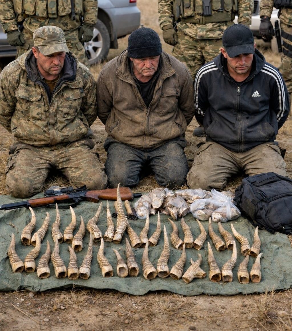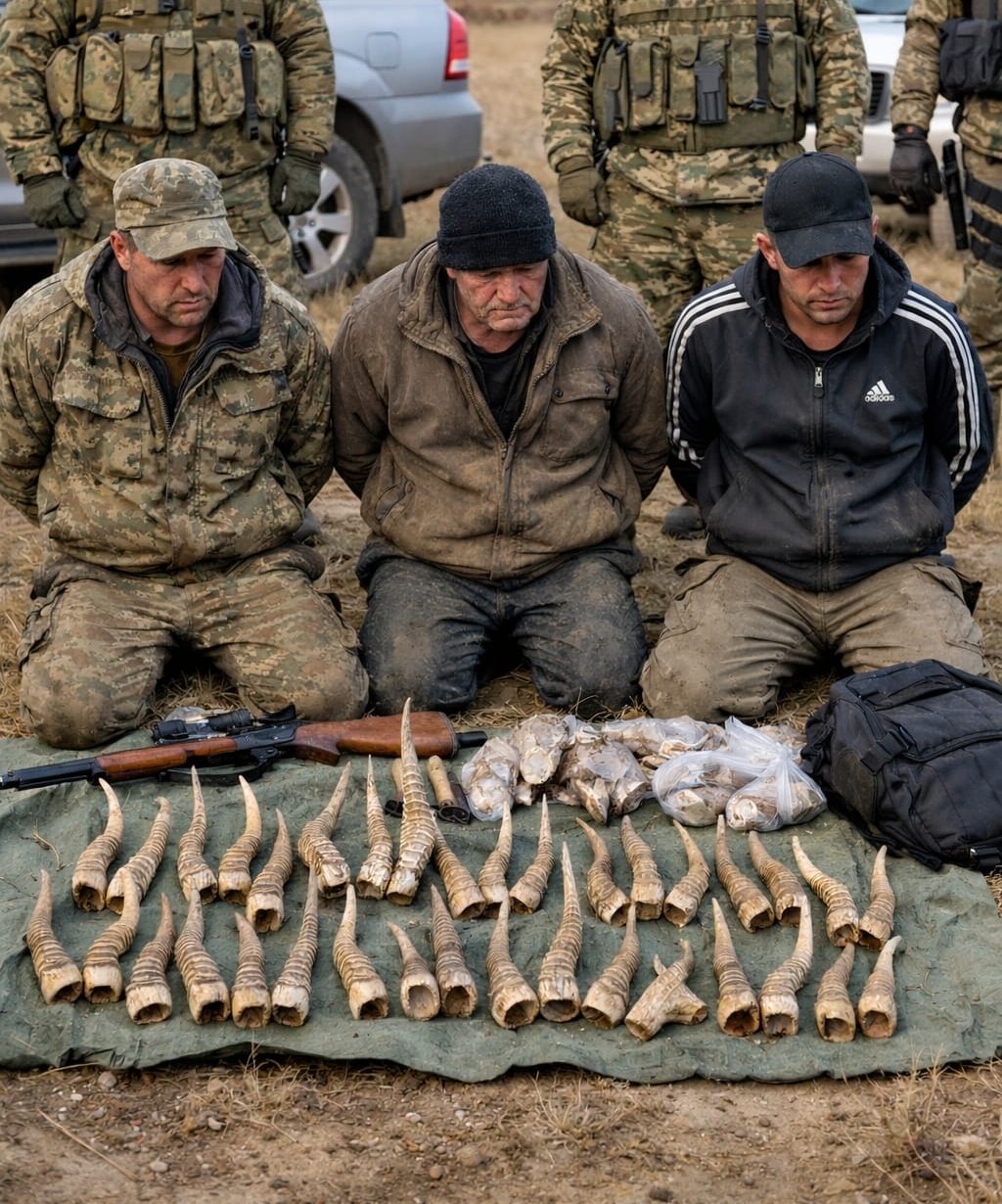 Чтобы проследить цепочку незаконной охоты на сайгаков и дальнейшую реализацию их дериватов, на допросе задержанные дали признательные показания. Благодаря чему полиции недавно удалось задержать их двух подельников. Они пытались перевезти незаконно добытый трофей из Павлодарской области в Россию. У второй группы контрабандистов были обнаружены рога сайги в количестве 1 882 штук. Их спрятали в специальном тайнике, оборудованном в грузовой автомашине.