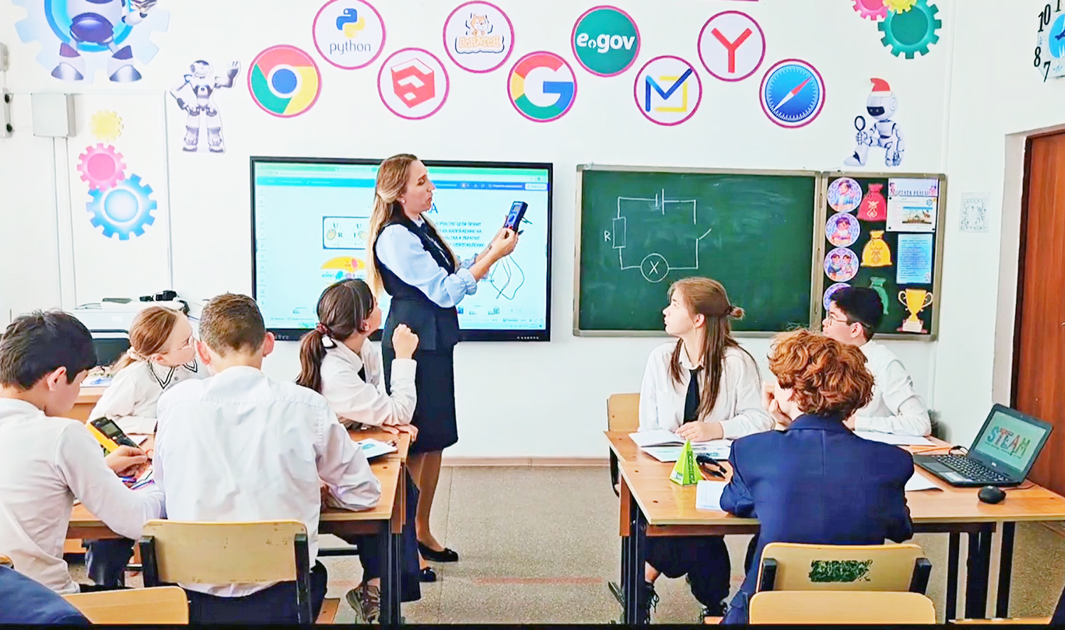 Интересно и то, что учитель информатики преподает урок на двух языках – русском и казахском. При этом государственный язык – не формальное требование и не сухой перевод терминов, а полноценная образовательная среда.