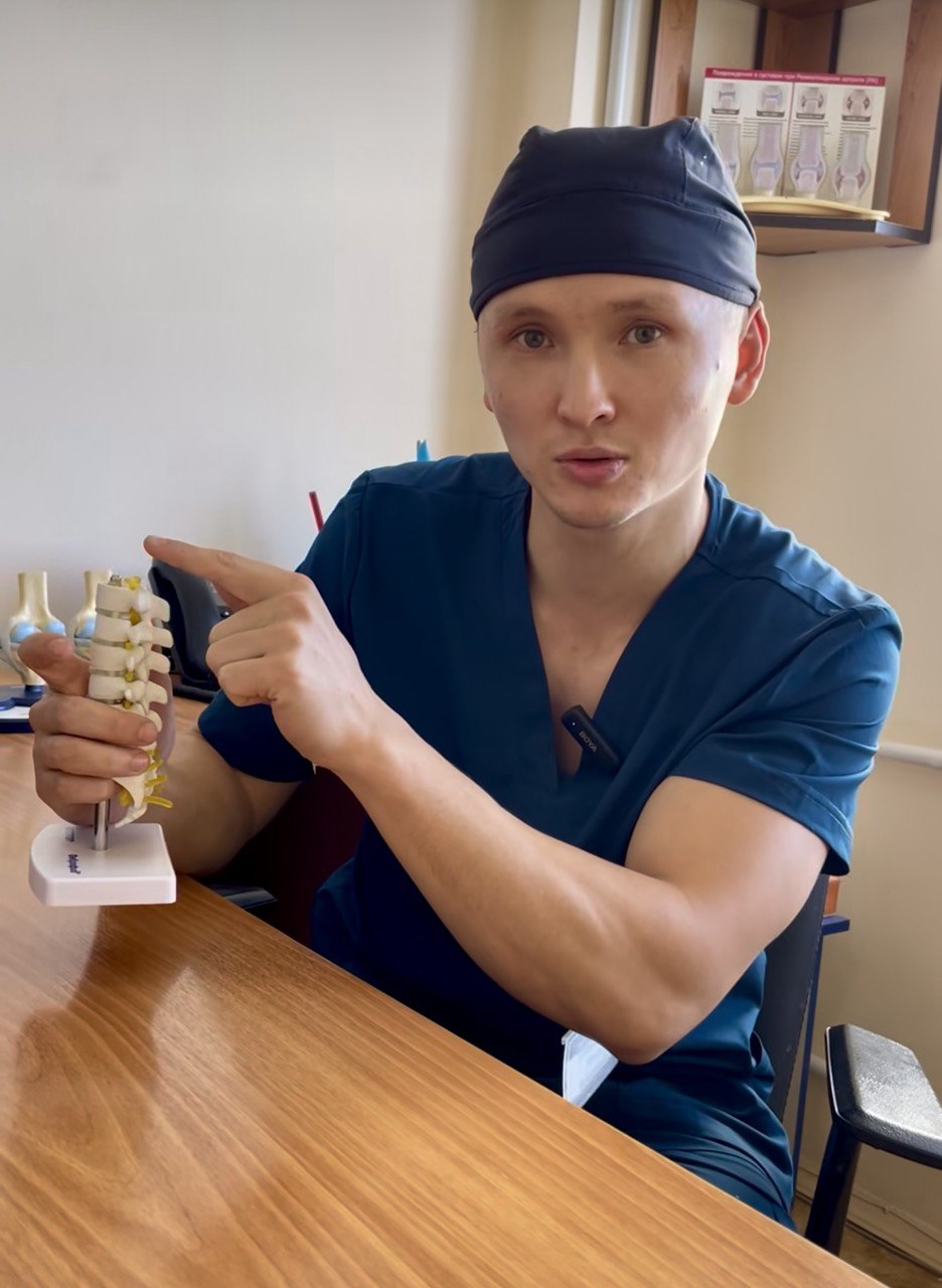 – Был выявлен перелом первого поясничного позвонка с нестабильностью и повреждением спинного мозга. При таких травмах возможен исход вплоть до отключения ног и функции тазовых органов. Было принято решение провести первую в Балхаше операцию – транспедикулярную фиксацию, – рассказал нейрохирург центральной больницы Мирас Антаев, который и проводил ее.