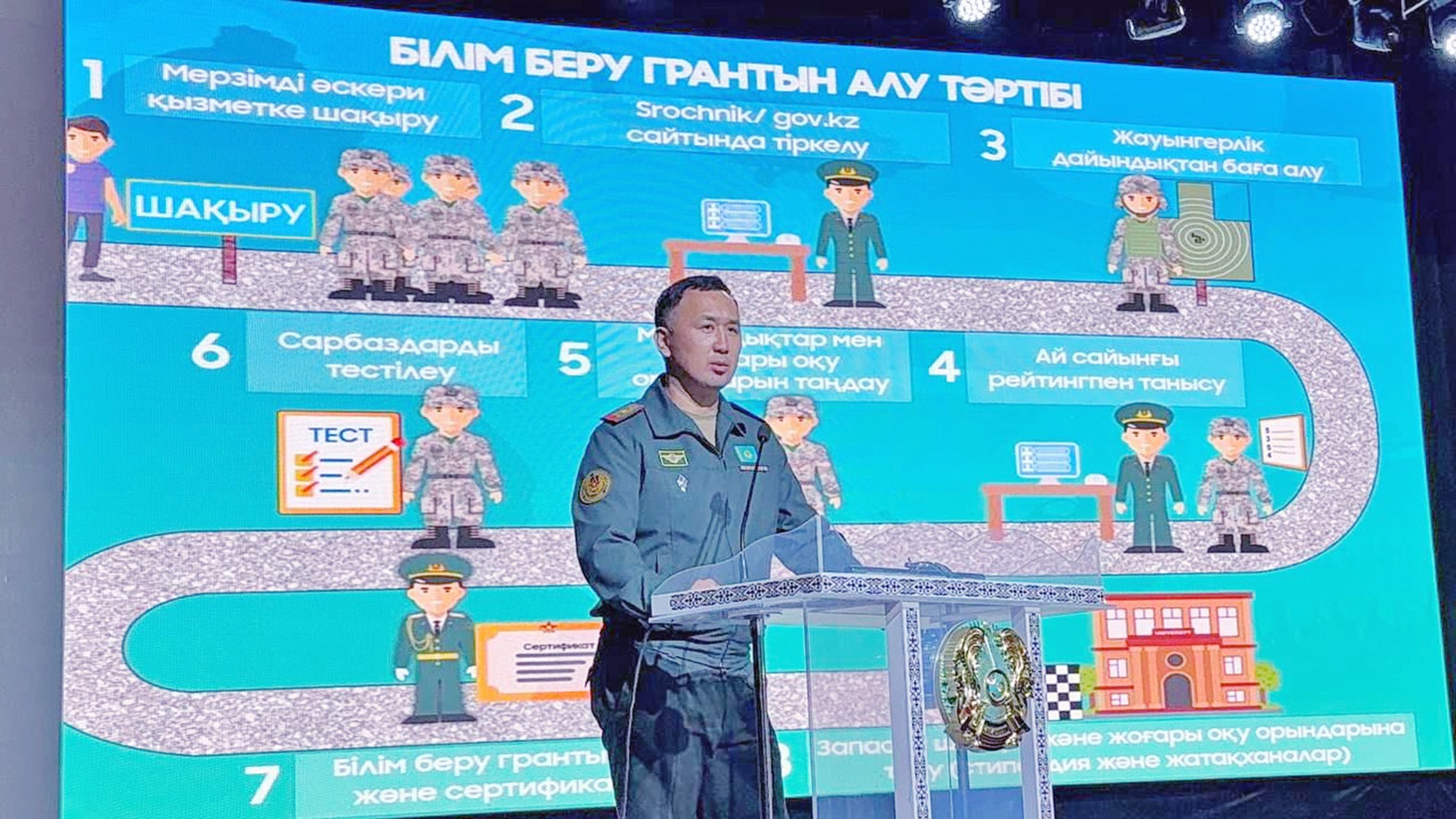 В Казахстане продолжается системная работа по формированию у подрастающего поколения чувства гордости за Родину и ответственности за ее будущее. Министерство обороны РК в нынешнем году активно реализует инициативу информационно-агитационных групп, цель которых – повышение имиджа и престижа воинской службы, мотивация молодежи к выполнению воинского долга и укрепление военно-патриотического воспитания граждан.