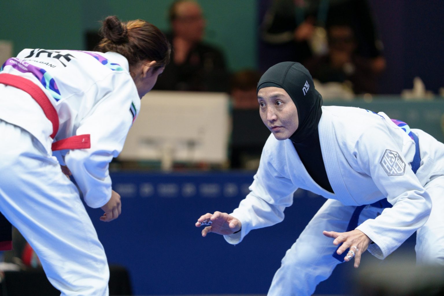 На турнире по джиу-джитсу в весовой категории до 63 кг среди женщин выступала карагандинка Ажар Салыкова. В первой схватке она уступила спортсменке из Объединенных Арабских Эмиратов, а затем одолела представительницу Алжира.