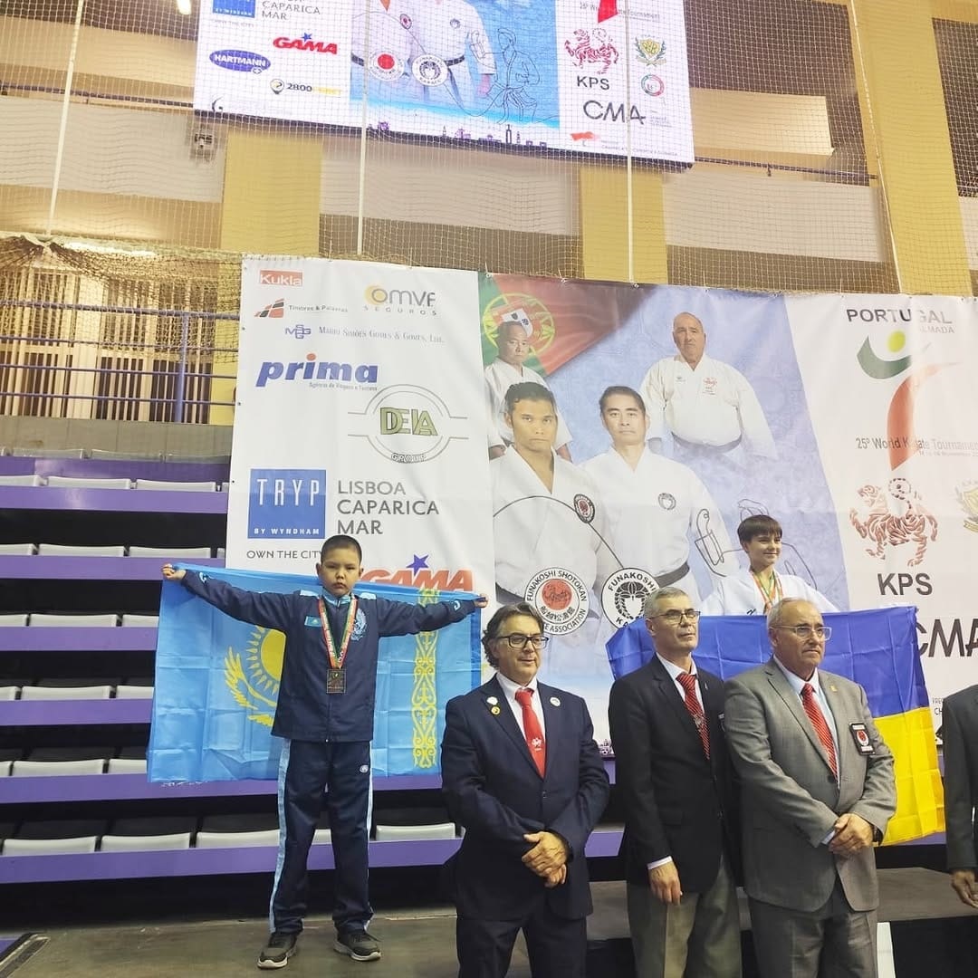 В упорной и бескомпромиссной борьбе на турнире в Португалии наши земляки добыли золотую, две серебряные и бронзовую медаль. Президент Карагандинской областной федерации каратэ WKF Виктор Ешкин завоевал свой пятый титул чемпиона мира в кумите среди ветеранов в возрастной категории 56-65 лет. Пример наставника придал силы юным каратистам. Серебряными призерами мирового первенства стали Анзор Дааев в возрастной группе 11-12 лет и Нұрдәулет Амангелді среди спортсменов 9-10 лет. Равиль Халитов, выступавший в категории 15-17 лет, поднялся на третью ступень пьедестала почета.
