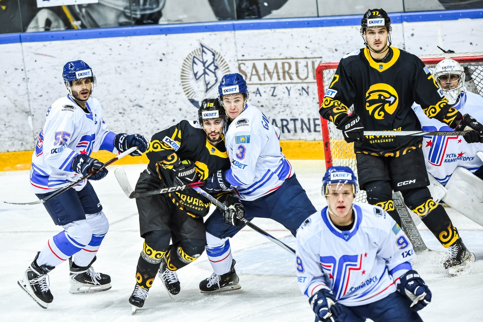 Девятого октября состоялась первая битва между принципиальными соперниками. «Желто-черные» со стартового свистка арбитра начали штурмовать ворота гостей. Карагандинцы создавали давление в зоне «Торпедо» и действовали первым номером. Гости не отсиживались в обороне – их контратаки несли определенную угрозу, но голкипер «Сарыарки» Жакен Ибрагимов уверенно отражал броски соперника. «Пожар» у ворот восточноказахстанцев набирал силу, гол назревал, и постепенно «орлы подбирались к зоне гостей. В ходе прессинга на торпедовцев нападающий хозяев площадки Радель Фазлеев забросил шайбу в ворота усть-каменогорцев.