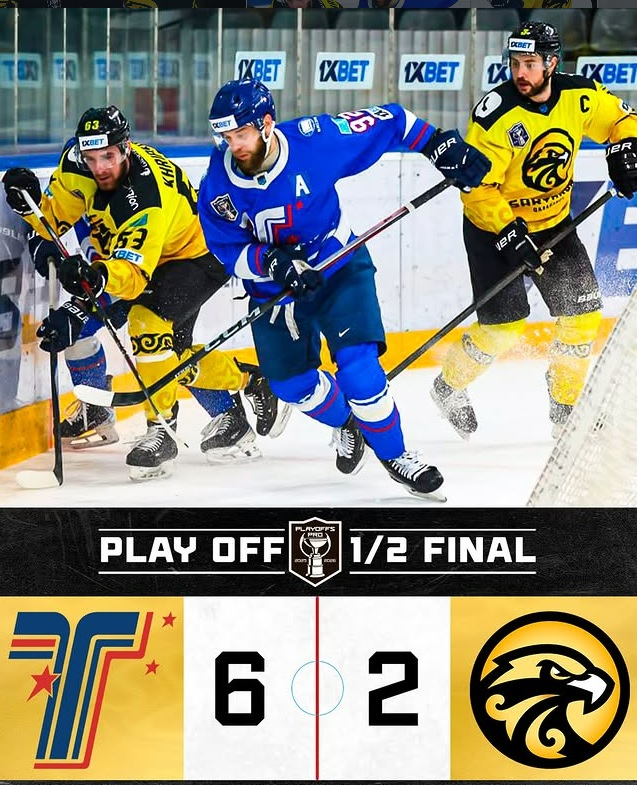 Развязка наступила в решающей двадцатиминутке. За полторы минуты карагандинцы умудрились пропустить две быстрые шайбы в свои ворота. У «черно-желтых» была возможность перевернуть игру, но наши ребята не смогли реализовать численное большинство. В результате грубой ошибки в защите гостей, восточноказахстанцы забили гол. За пять минут до финальной сирены тренерский штаб «орлов» снял вратаря, пытаясь уйти от поражения. Однако хозяева отправили шестую шайбу в пустые ворота «орлов». В первом полуфинальном матче «Сарыарка» уступила «Торпедо» со счетом 6:2.