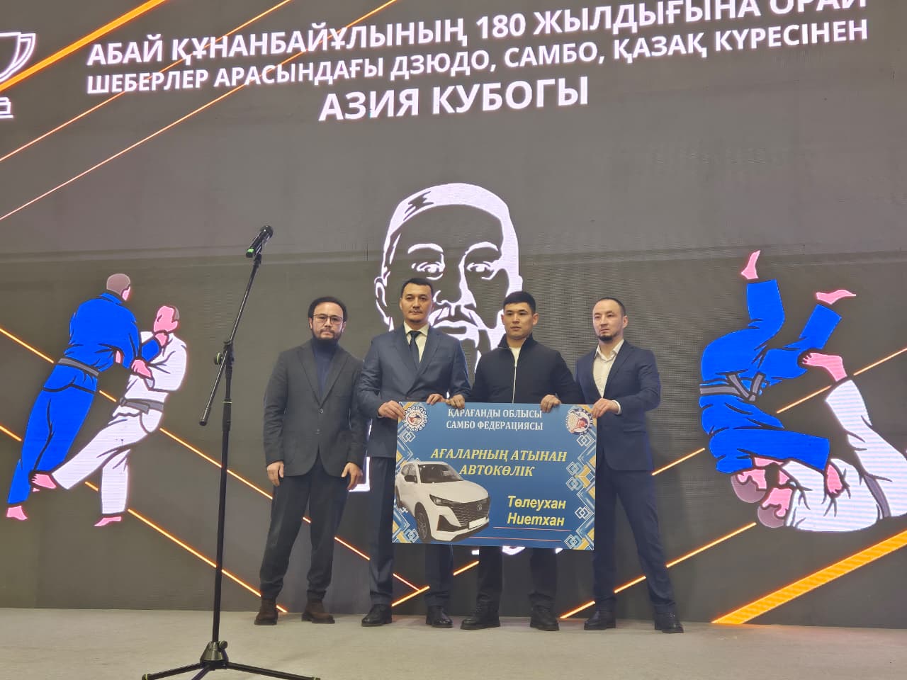 От имени Карагандинской областной федерации самбо денежными сертификатами на сумму 500 тысяч тенге наградили призеров чемпионата мира, среди них Жандос Бейсенбаев, Ержан Мадина и Маргарита Бажаева. Победитель мирового первенства по самбо Ниетхан Төлеухан стал обладателем автомобиля и сертификата на сумму 1 млн. тенге.