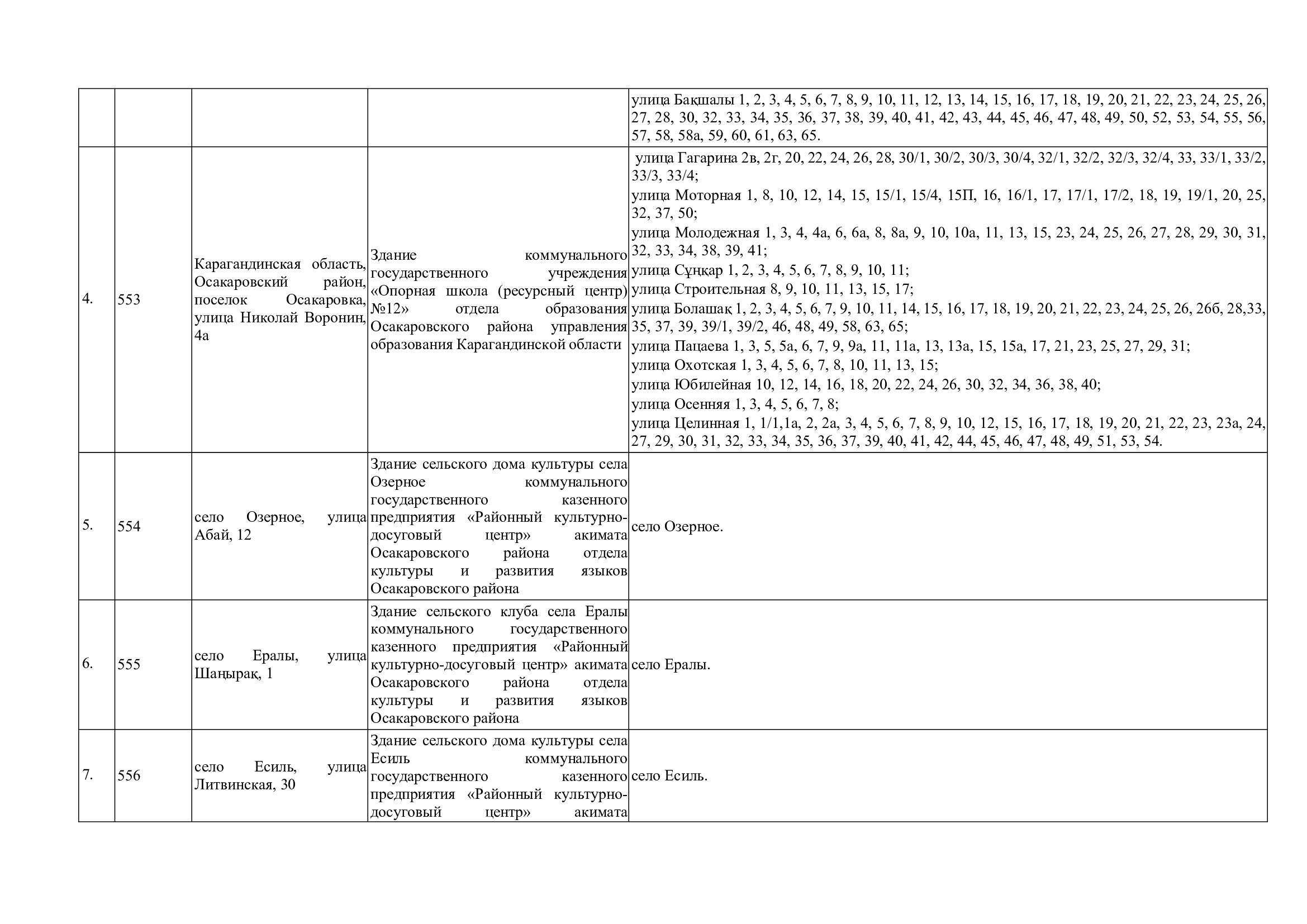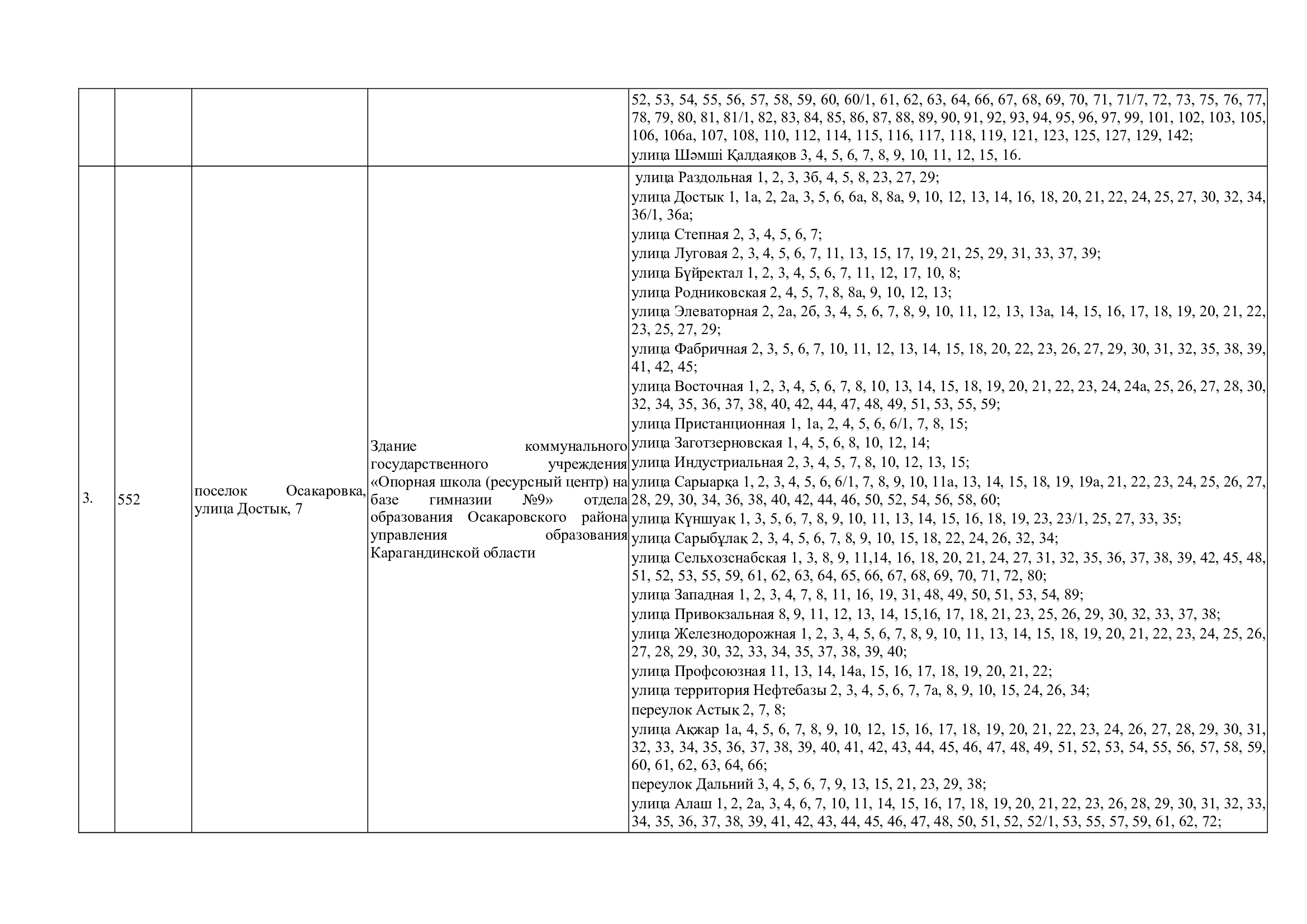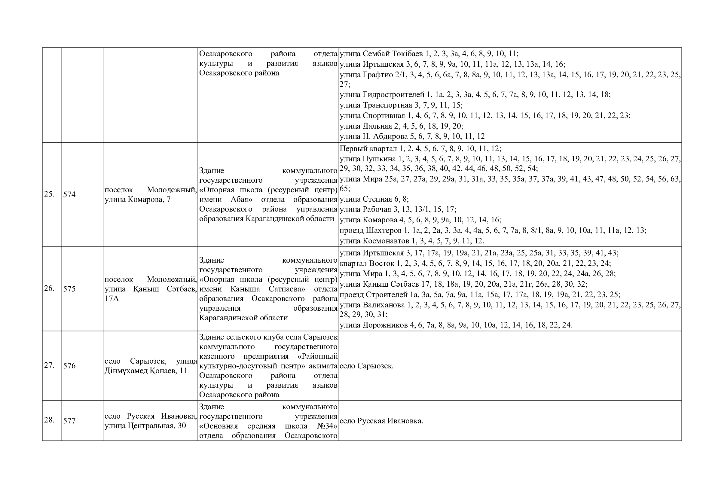 Границы участков референдума по Осакаровскому району для подготовки и проведения республиканского референдума, назначенного на 15 марта 2026 года