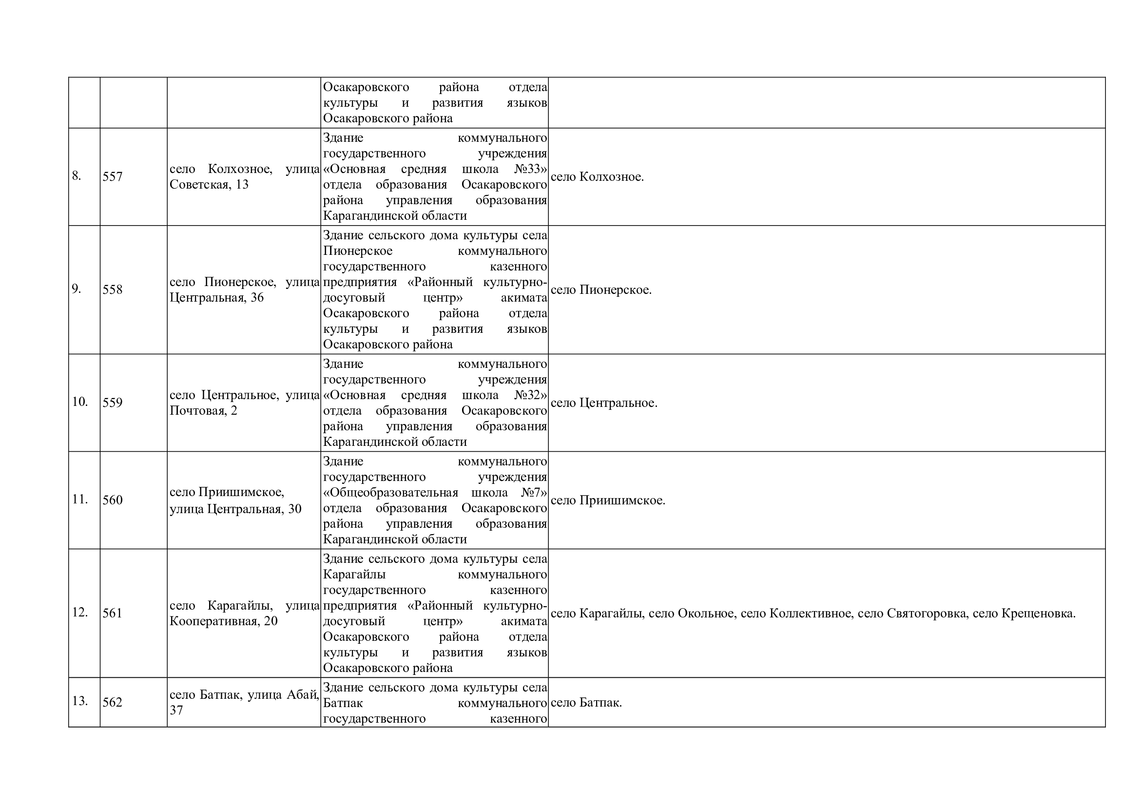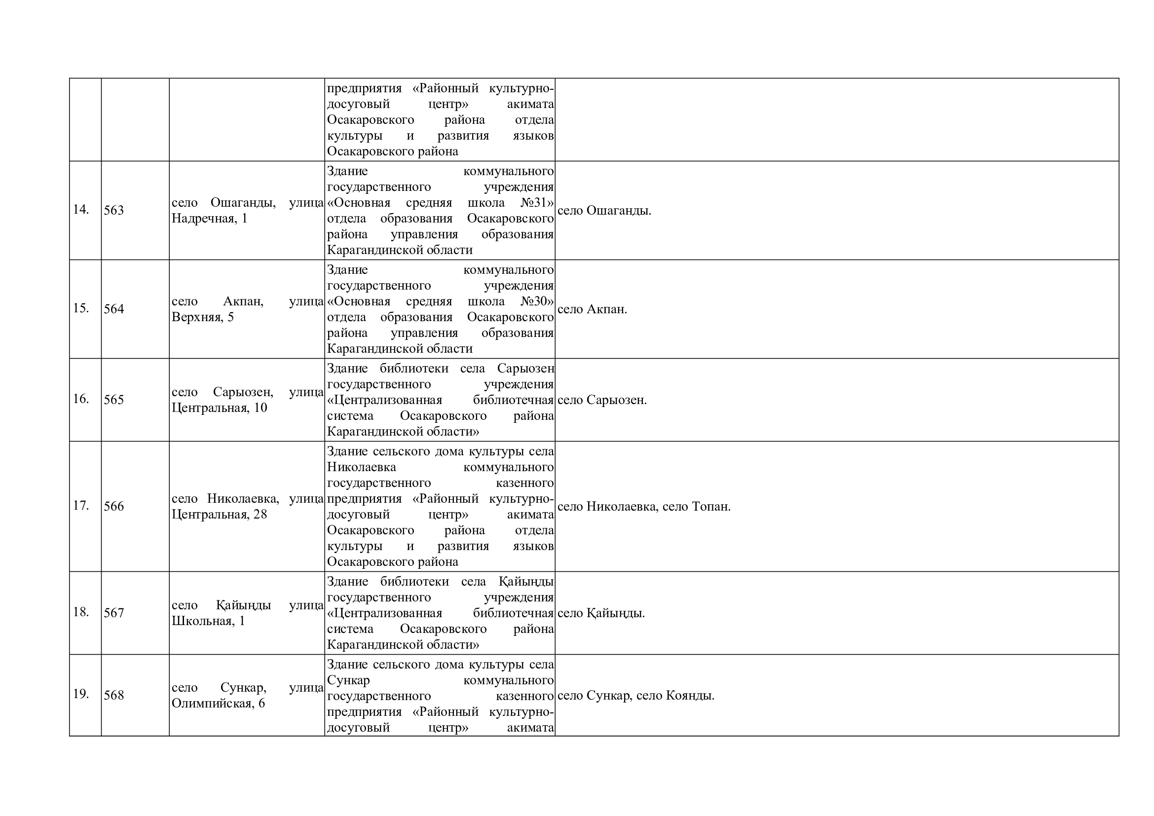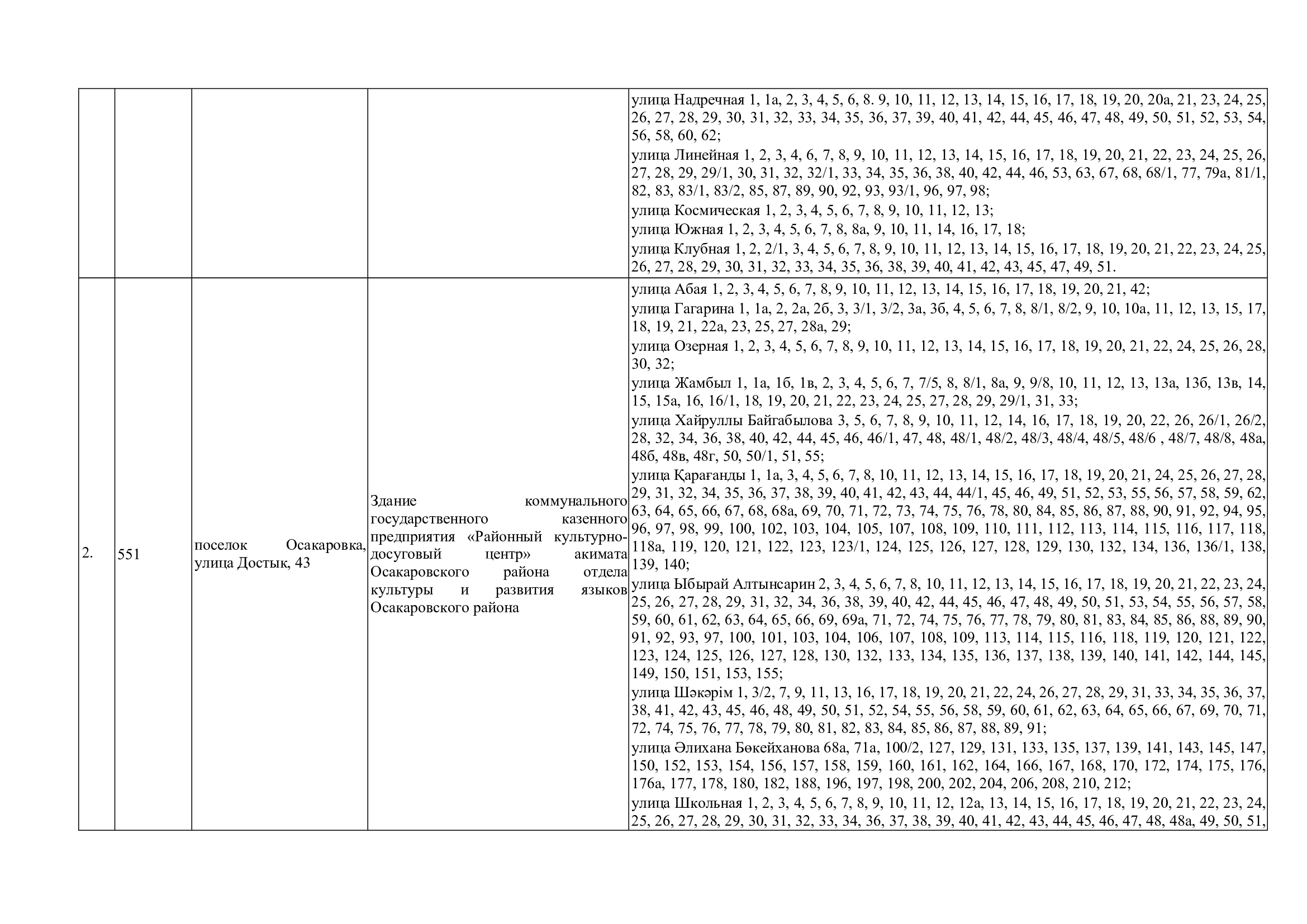 Границы участков референдума по Осакаровскому району для подготовки и проведения республиканского референдума, назначенного на 15 марта 2026 года