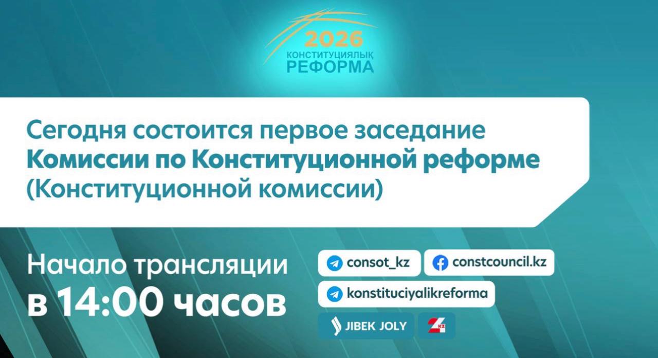Сегодня состоится первое заседание Комиссии по конституционной реформе, сообщает официальный Telegram-канал Конституционного суда Республики Казахстан.