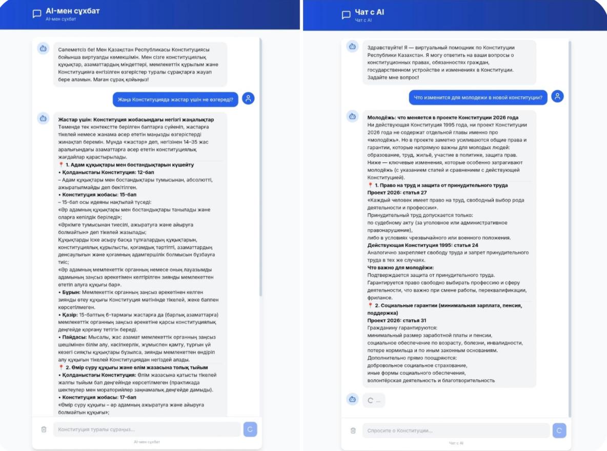 Разработчики отмечают, что главная задача платформы – сделать содержание Конституции более понятным и доступным для широкого круга граждан. AI-сервис будет размещен на официальном сайте Общенациональной коалиции и станет удобным инструментом для изучения основного закона, обсуждения предлагаемых изменений и повышения правовой грамотности.